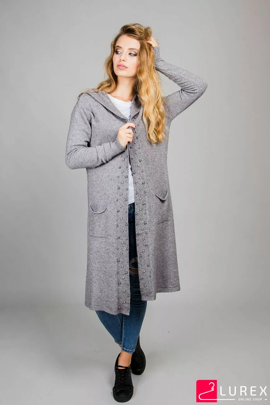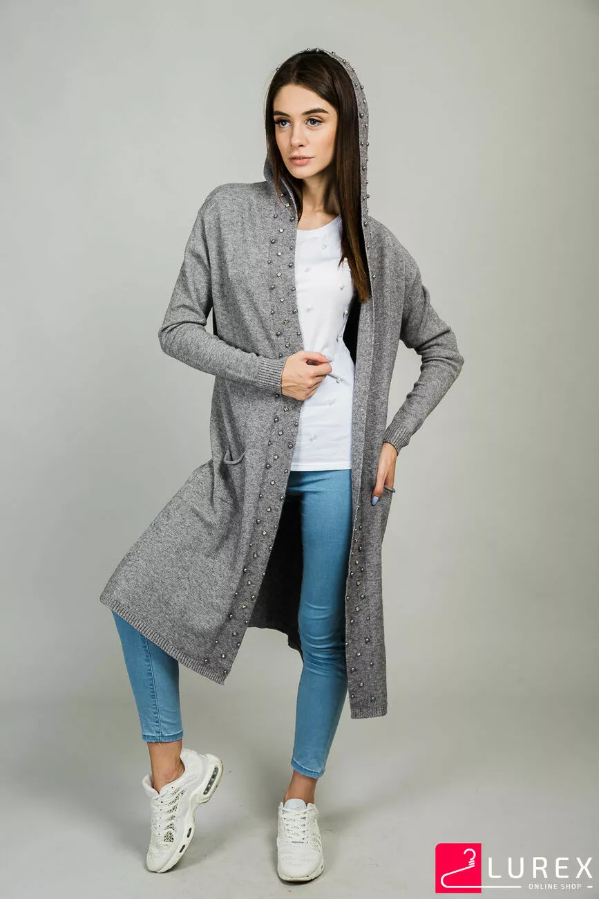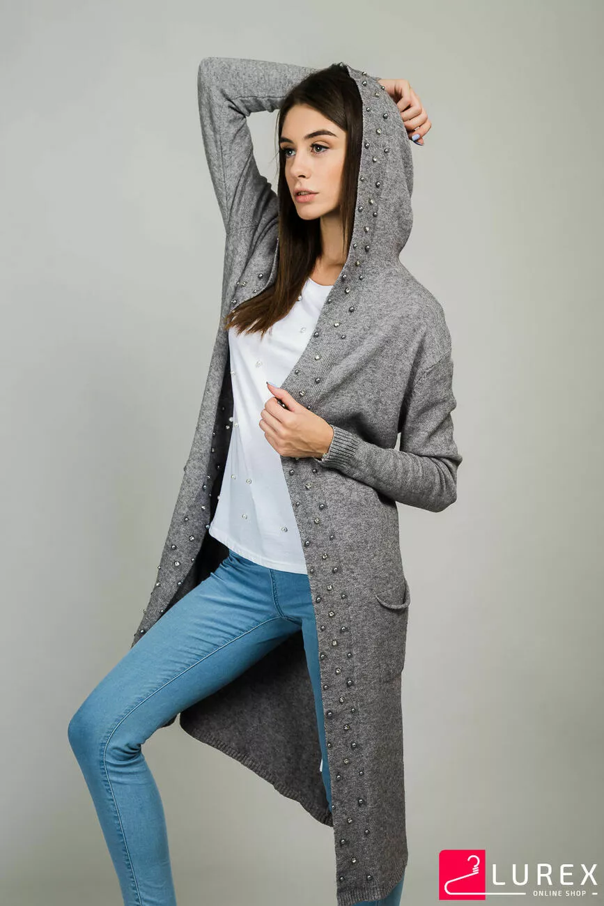 ANNY Кардиган с бусинами и капюшоном - серый цвет, S/M