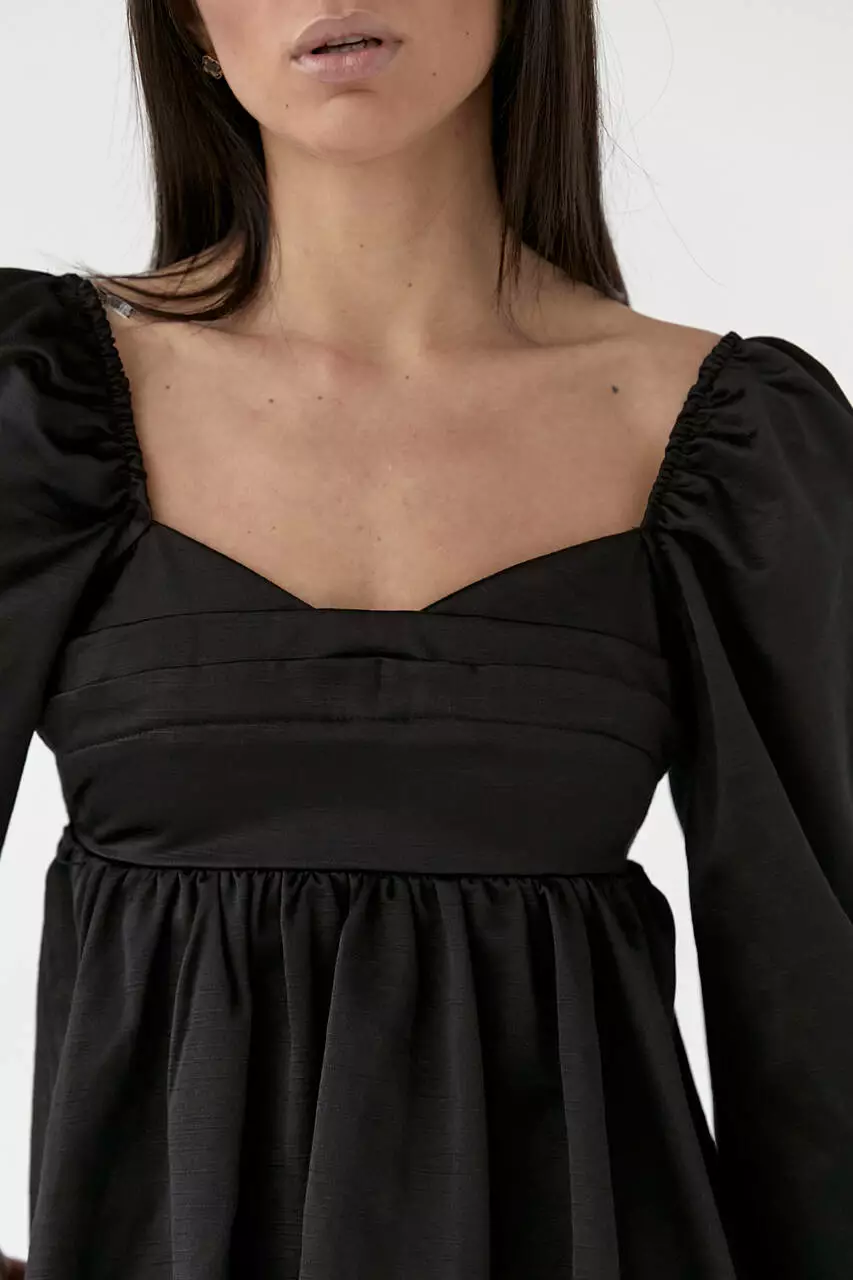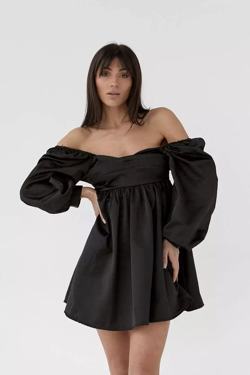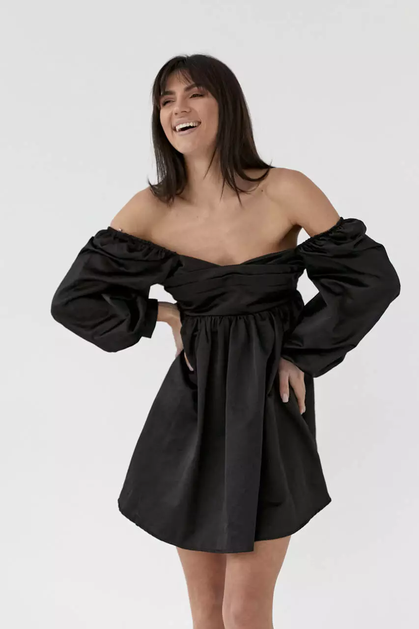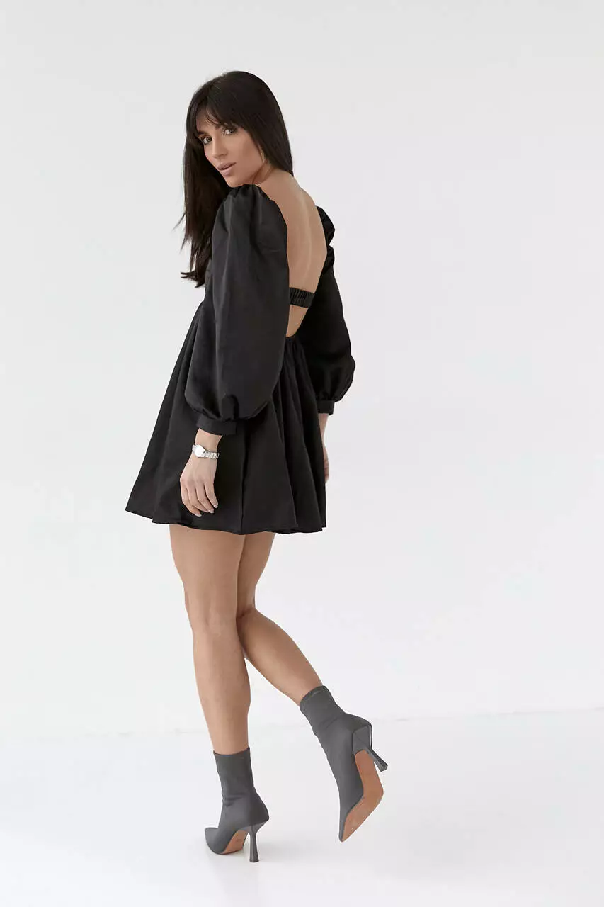 Атласное платье-мини с пышной юбкой и с открытой спиной - черный цвет, L (есть размеры)