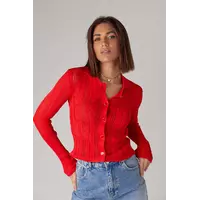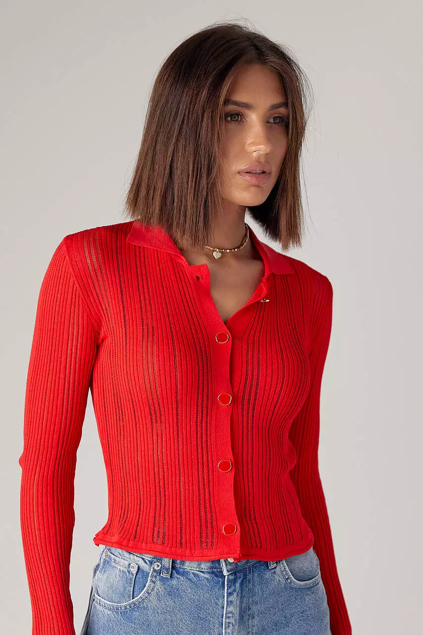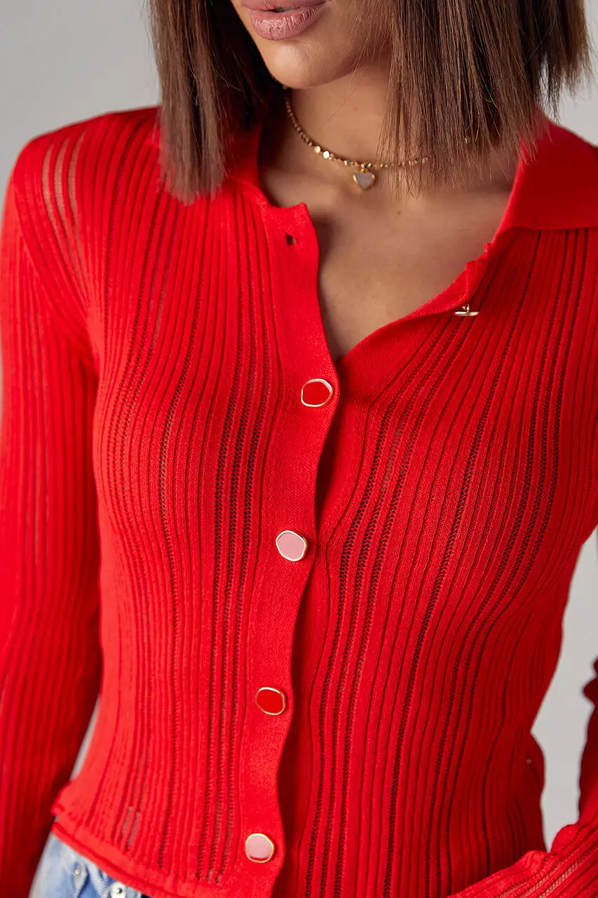 Ажурный кардиган на пуговицах с воротником - красный цвет, L (есть размеры)