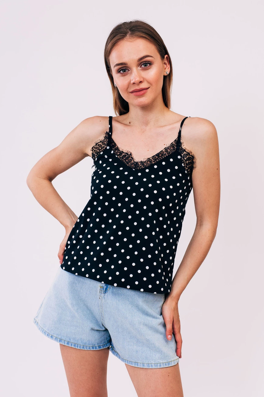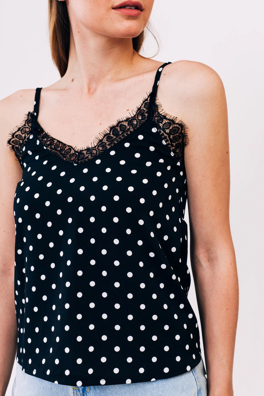 Babai Майка комбинация в горох - черный цвет, S