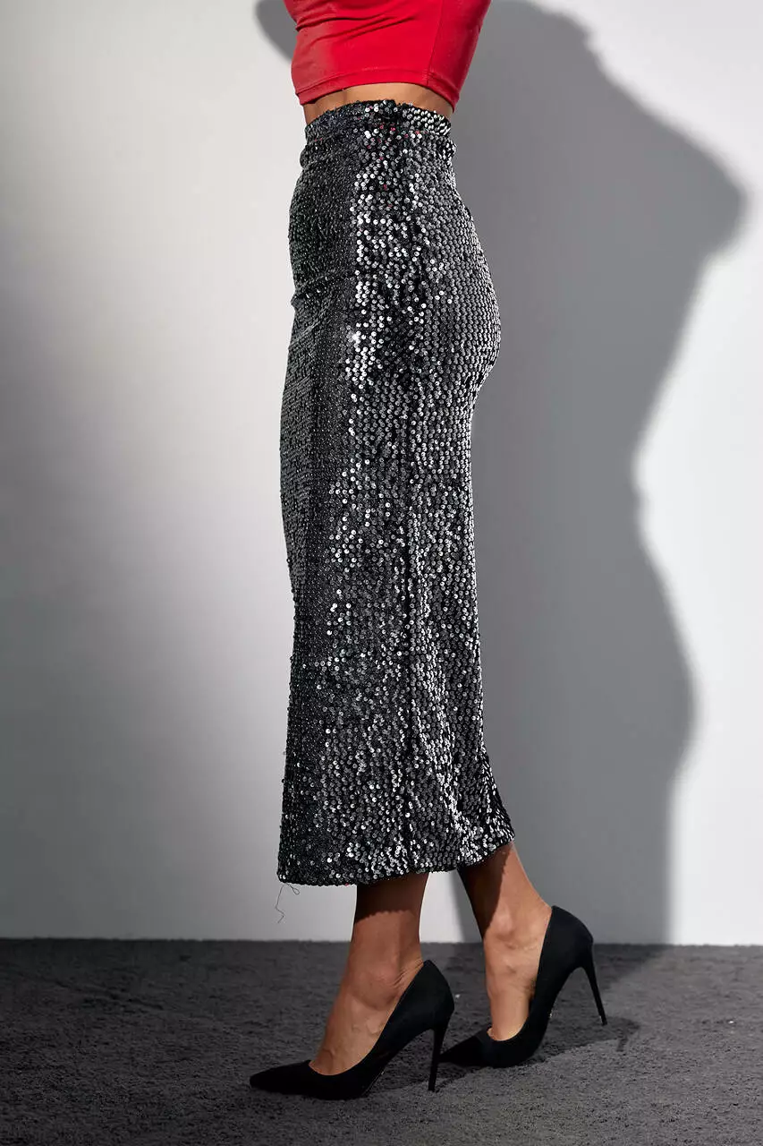 Бархатная юбка-карандаш с пайетками - черный цвет, S (есть размеры)