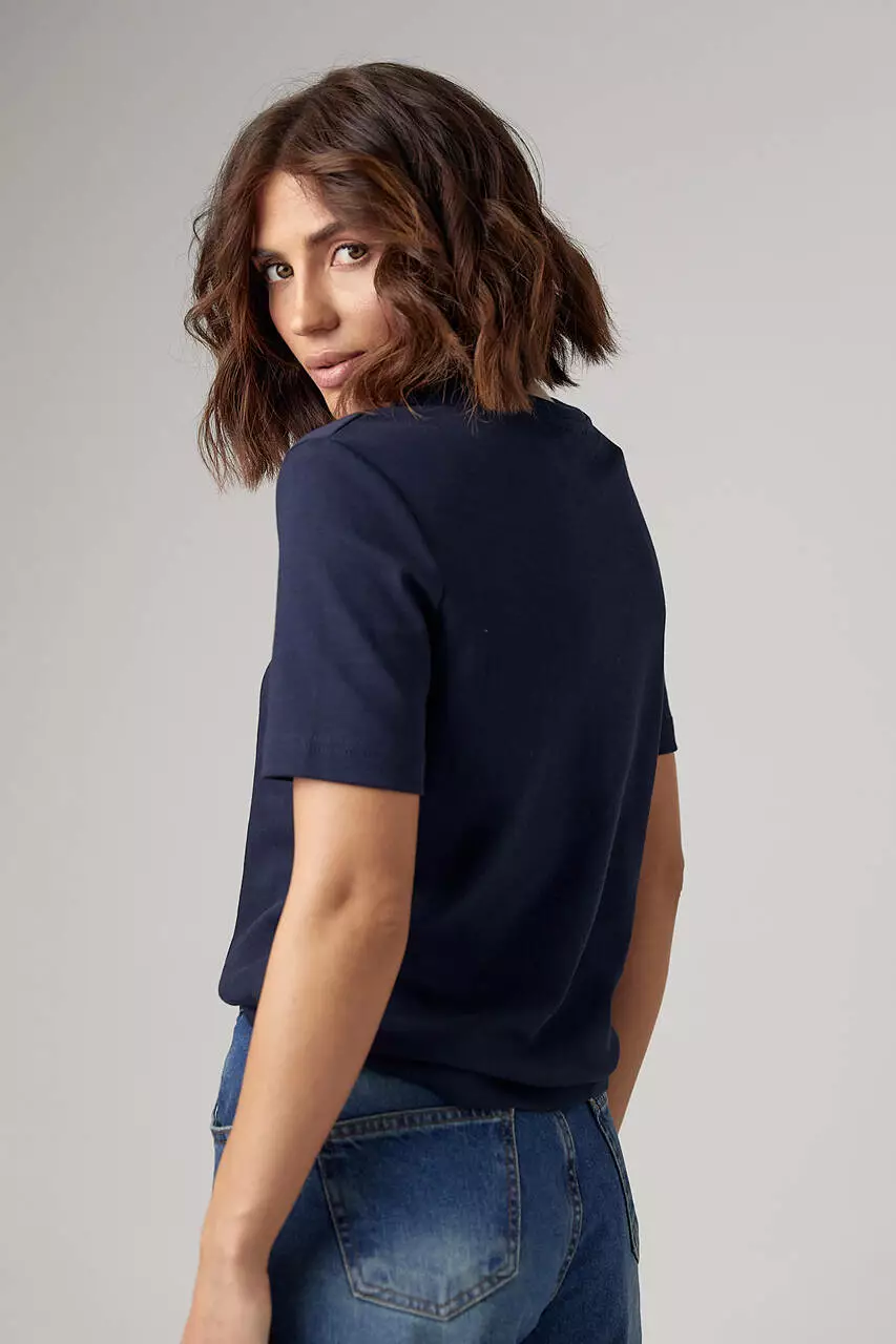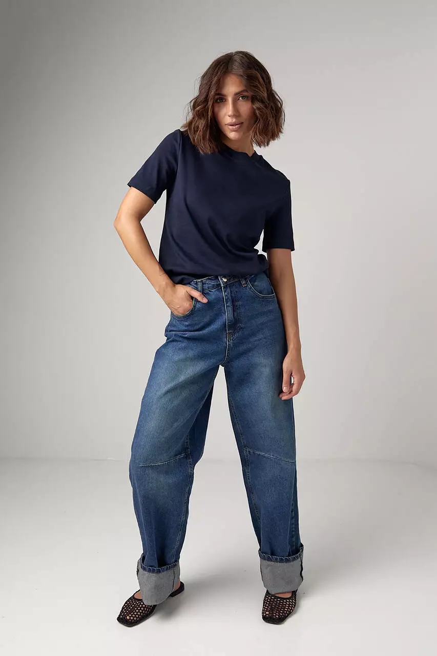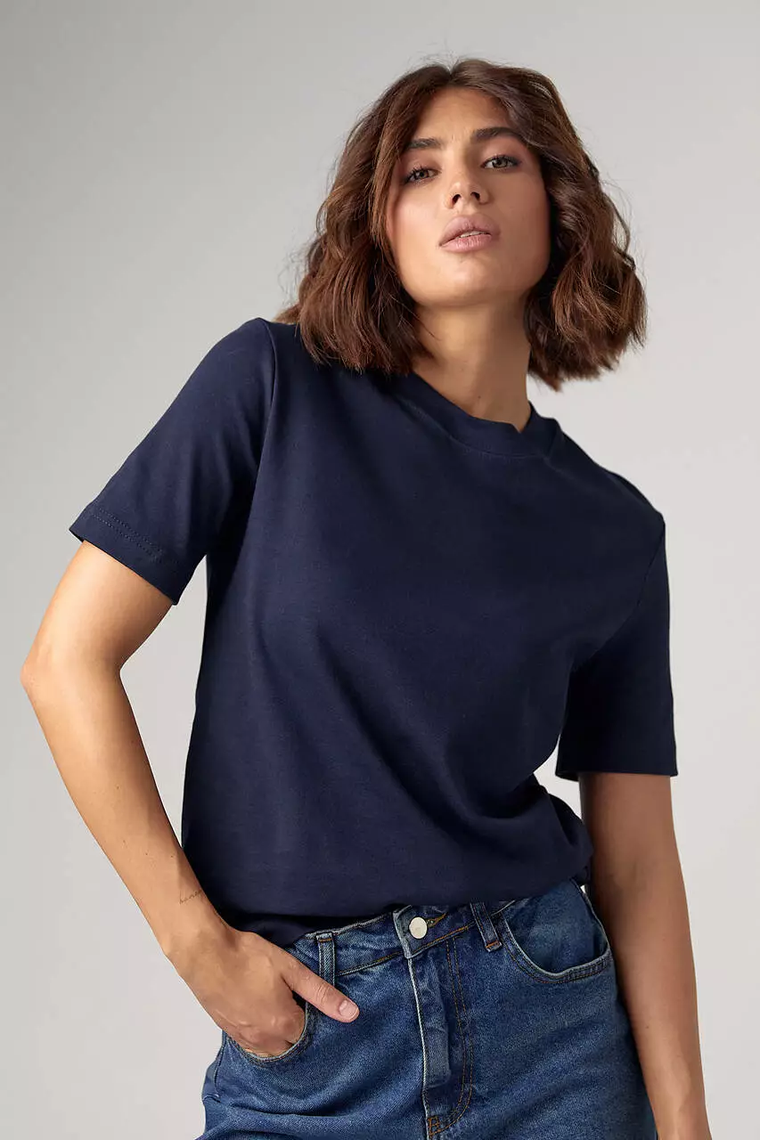 Базовая однотонная женская футболка - темно-синий цвет, L (есть размеры)