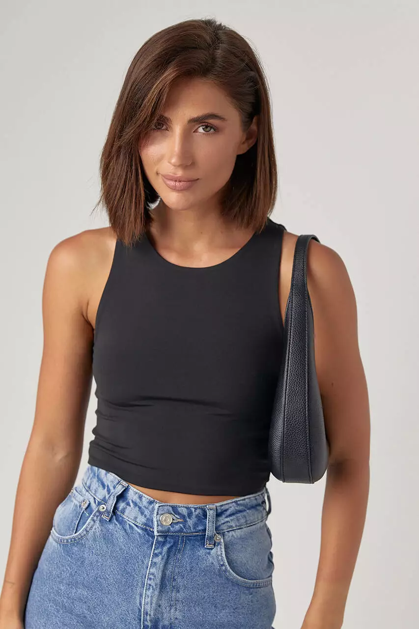 Однотонный базовый кроп-топ с эластичной ткани - идеальное