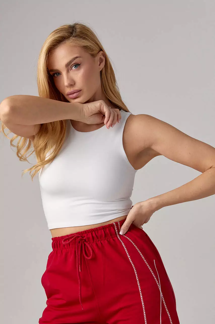 Однотонный базовый кроп-топ с эластичной ткани - идеальное