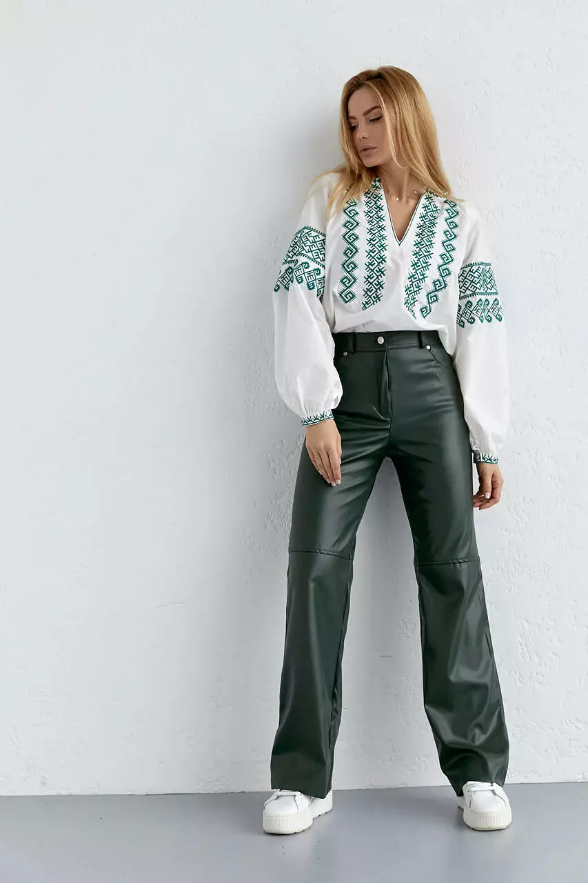 Стильные женские брюки из кожзама станут прекрасной альтернативой классическим моделям в холодную пору. Благодаря текстуре под кожу они добавят модных акцентов и деловым нарядам с блузой и жакетом, и повседневным образам с вязаными свитерами или джемперами.