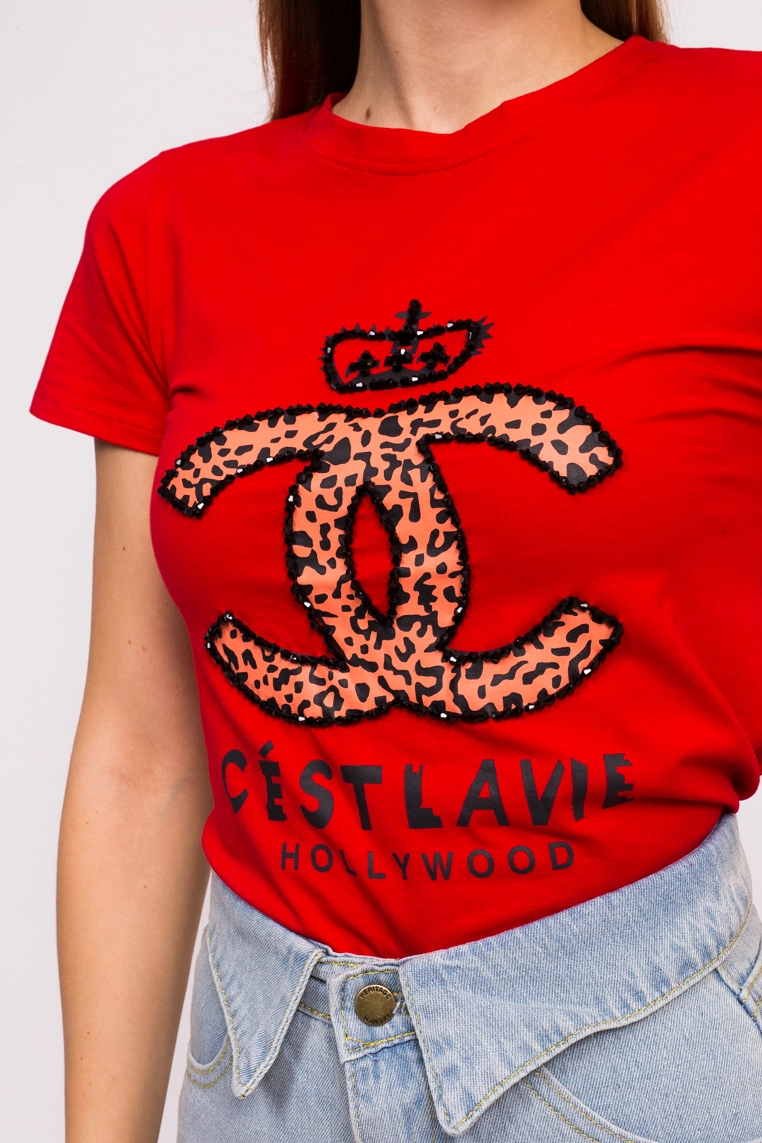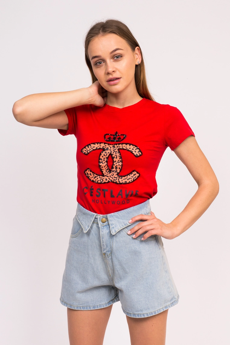 CHA-NE-L Стильная женская футболка - красный цвет, S