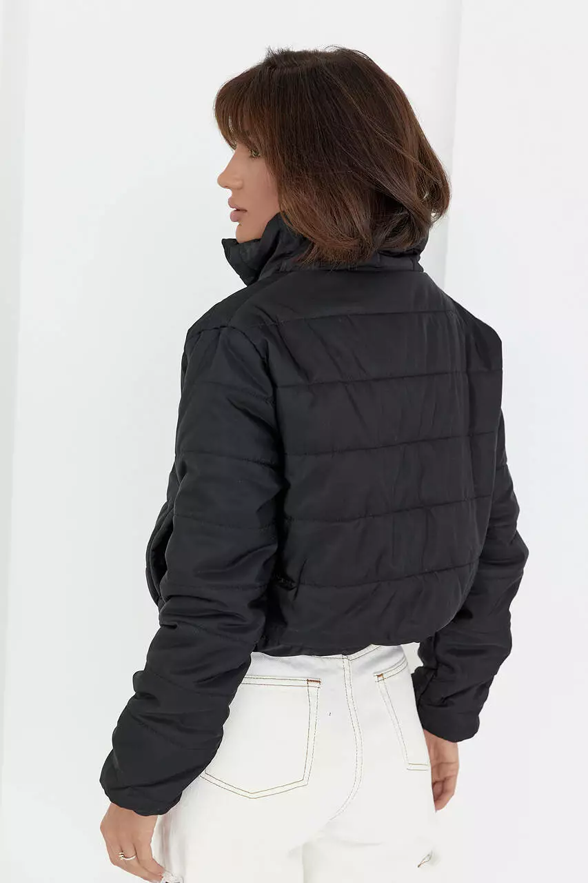 высоким воротником, края низа и длинные рукава на резинке, а сама