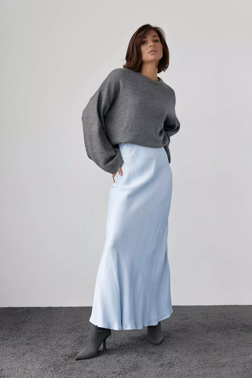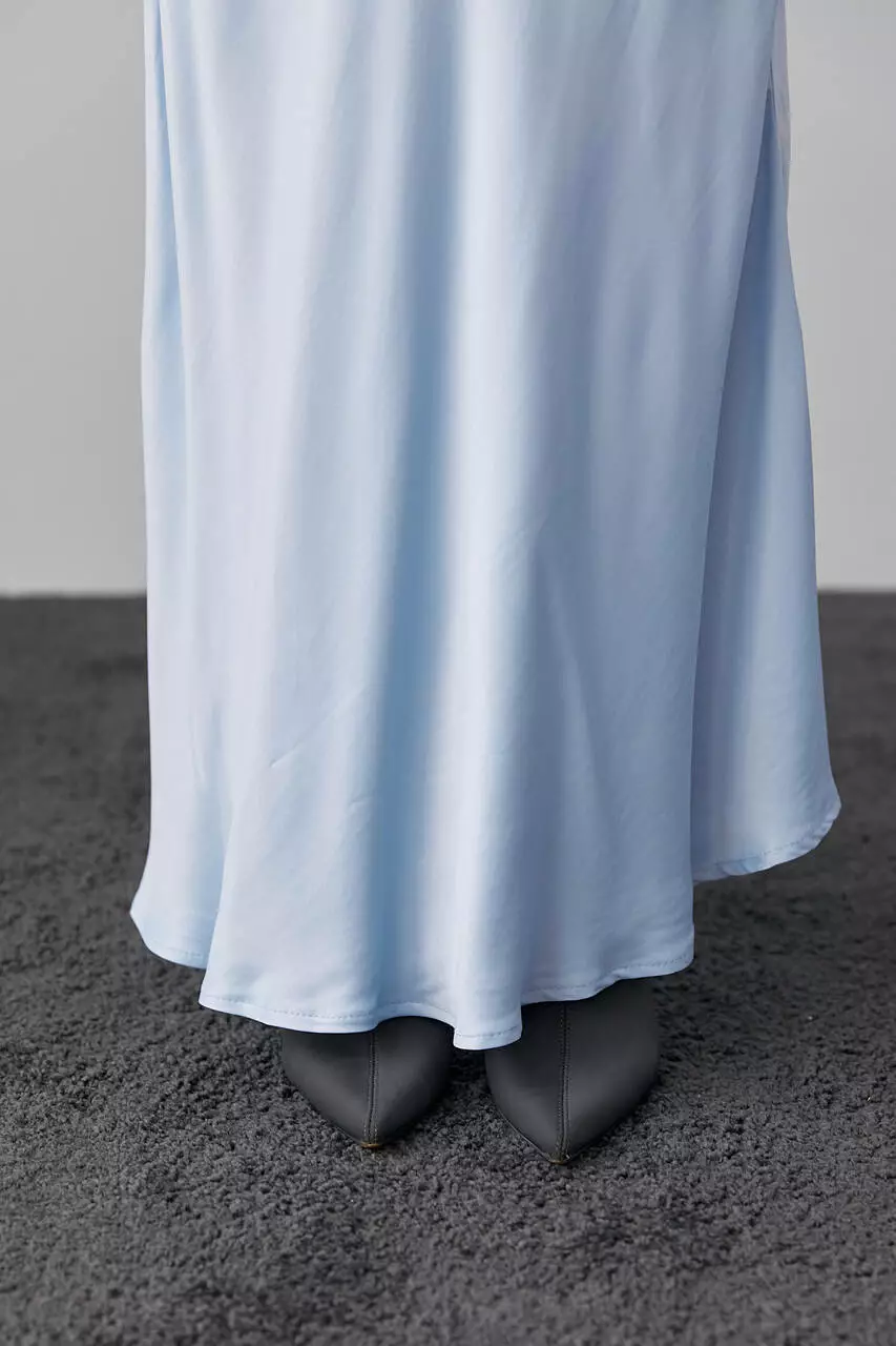 Длинная атласная юбка на резинке - голубой цвет, M (есть размеры)