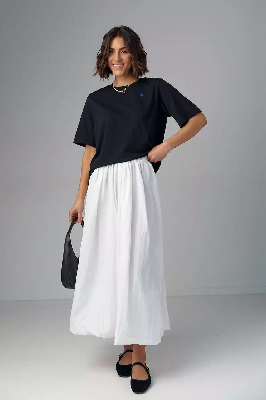 Сверху юбка собрана на резинку, которая обеспечивает комфортную