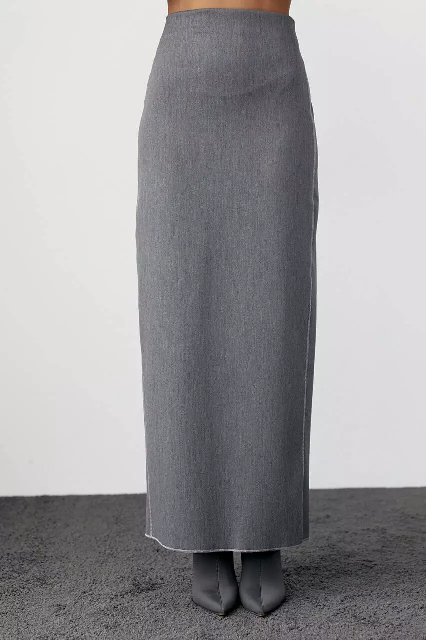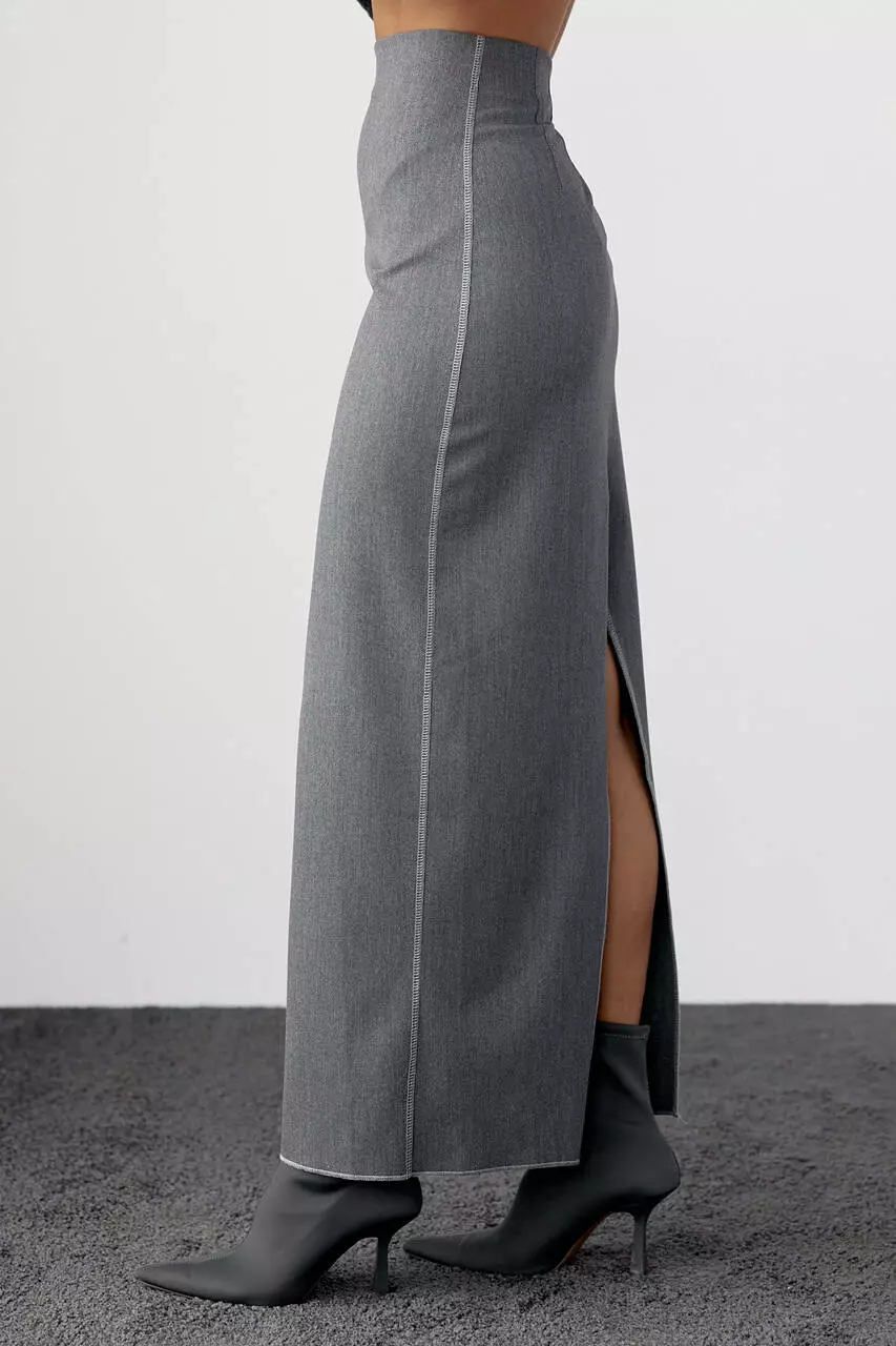 Длинная юбка-карандаш с высоким разрезом - серый цвет, L (есть размеры)