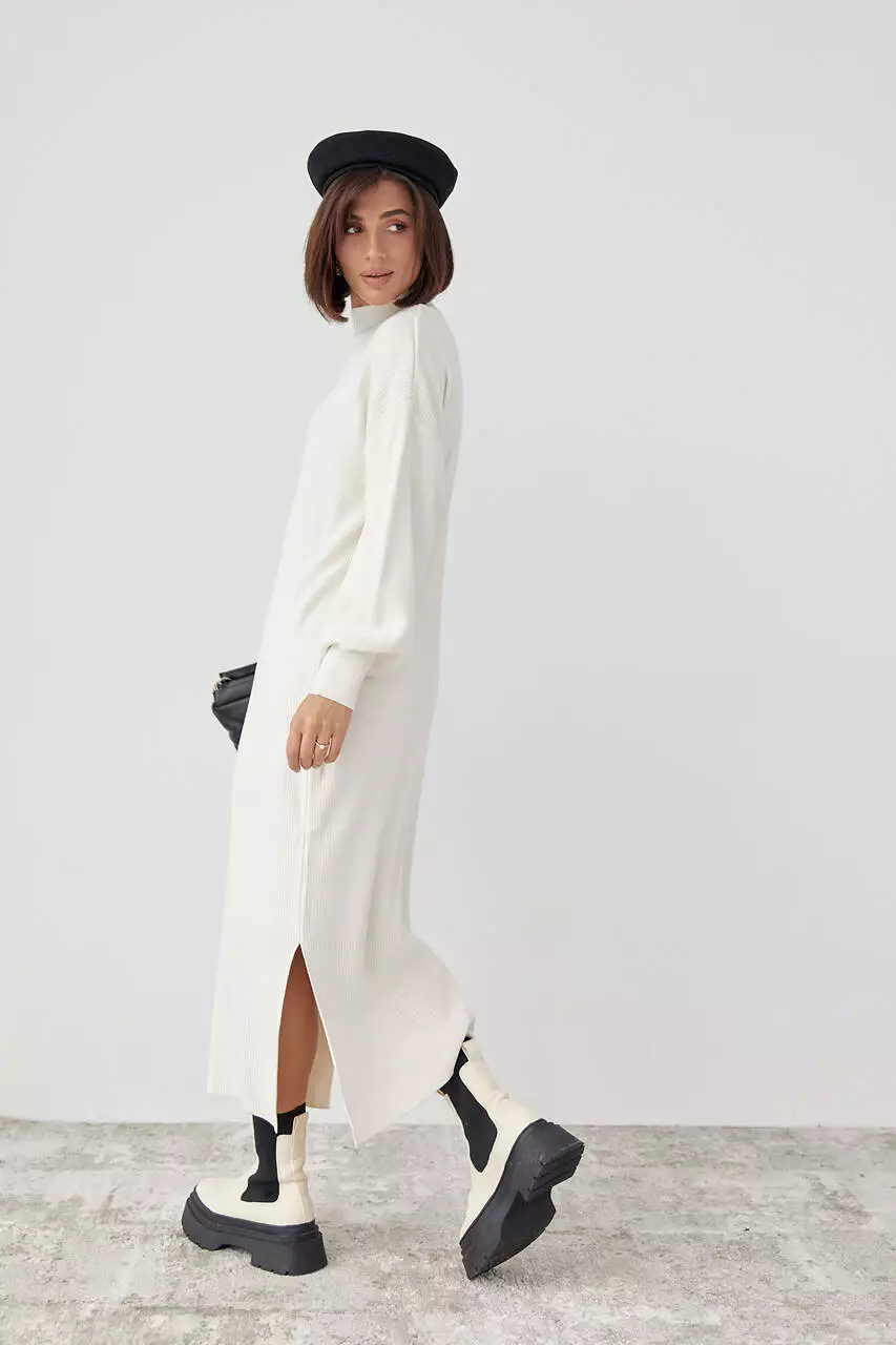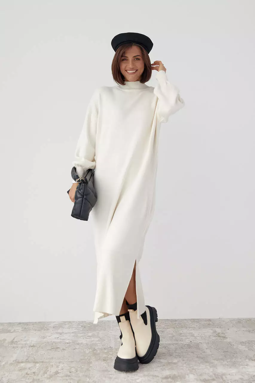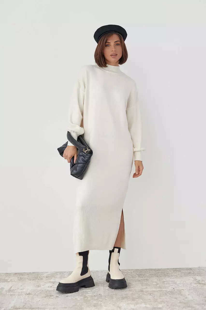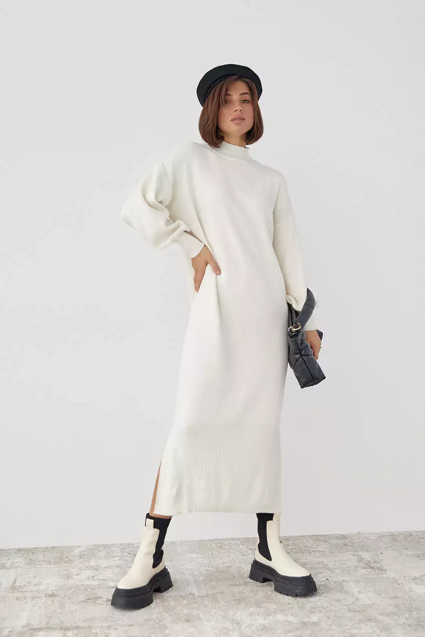 Длинное платье oversize с разрезами - кремовый цвет, L (есть размеры)
