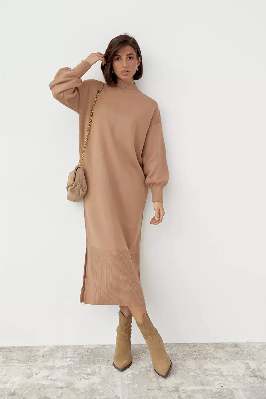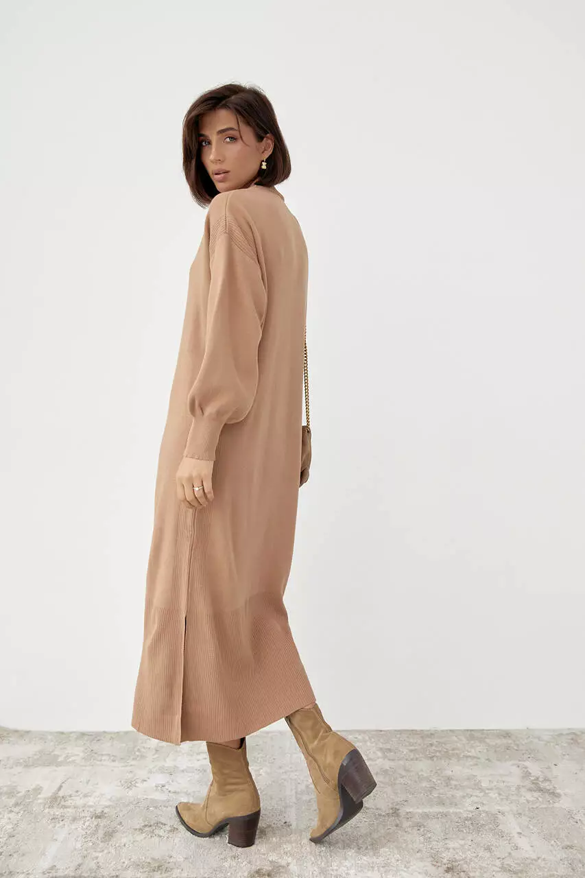 Длинное платье oversize с разрезами - светло-коричневый цвет, S (есть размеры)