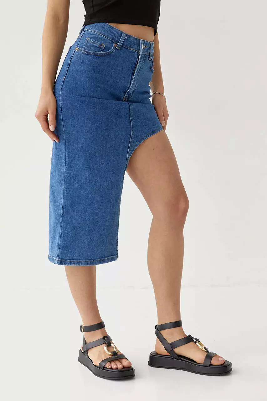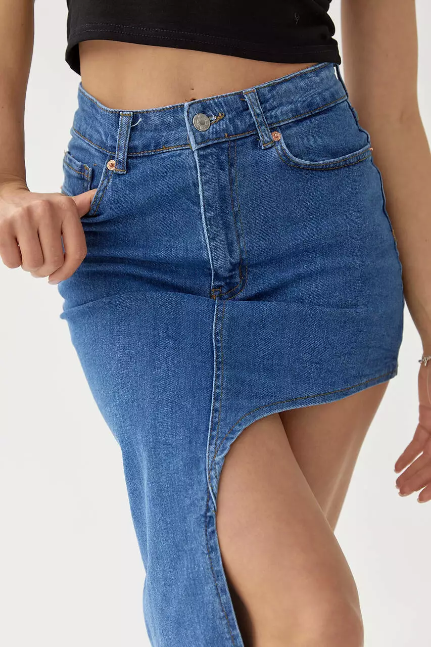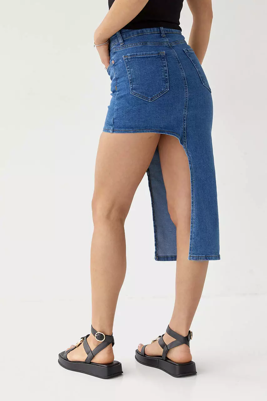 Джинсовая юбка с асимметрией - джинс цвет, 34р (есть размеры)