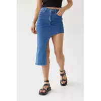 Эта джинсовая юбка с асимметричным низом поможет тебе создать эффектные образы на каждый день и для особого случая.