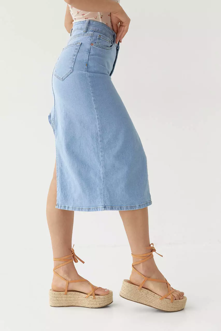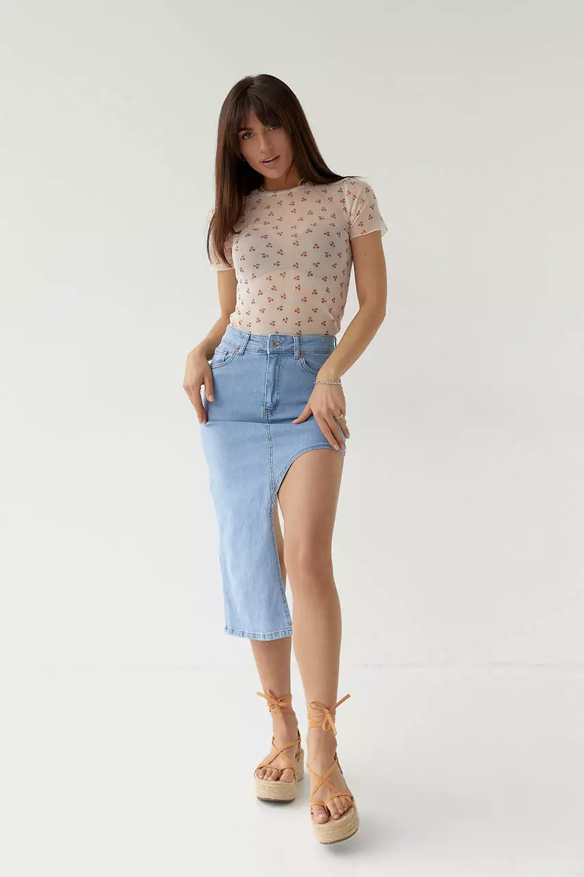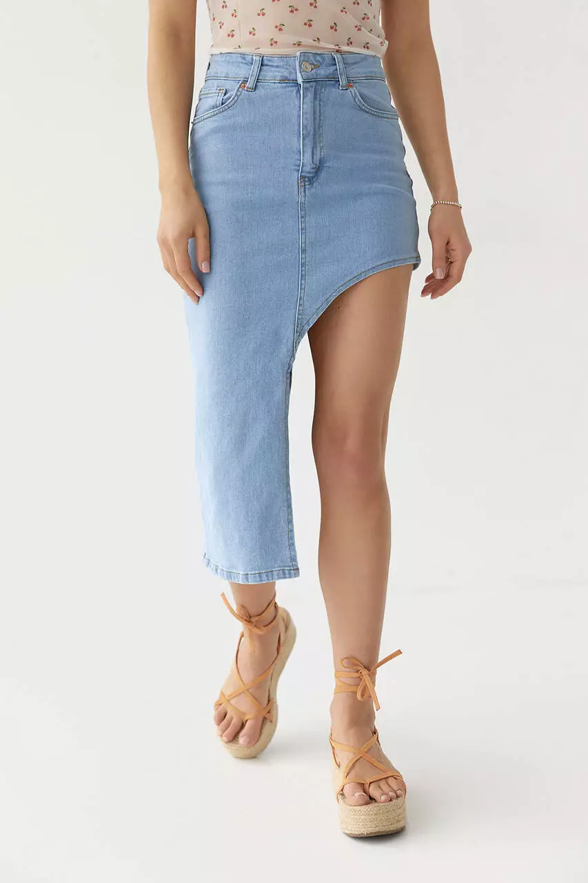 Эта джинсовая юбка с асимметричным низом поможет тебе создать эффектные образы на каждый день и для особого случая.