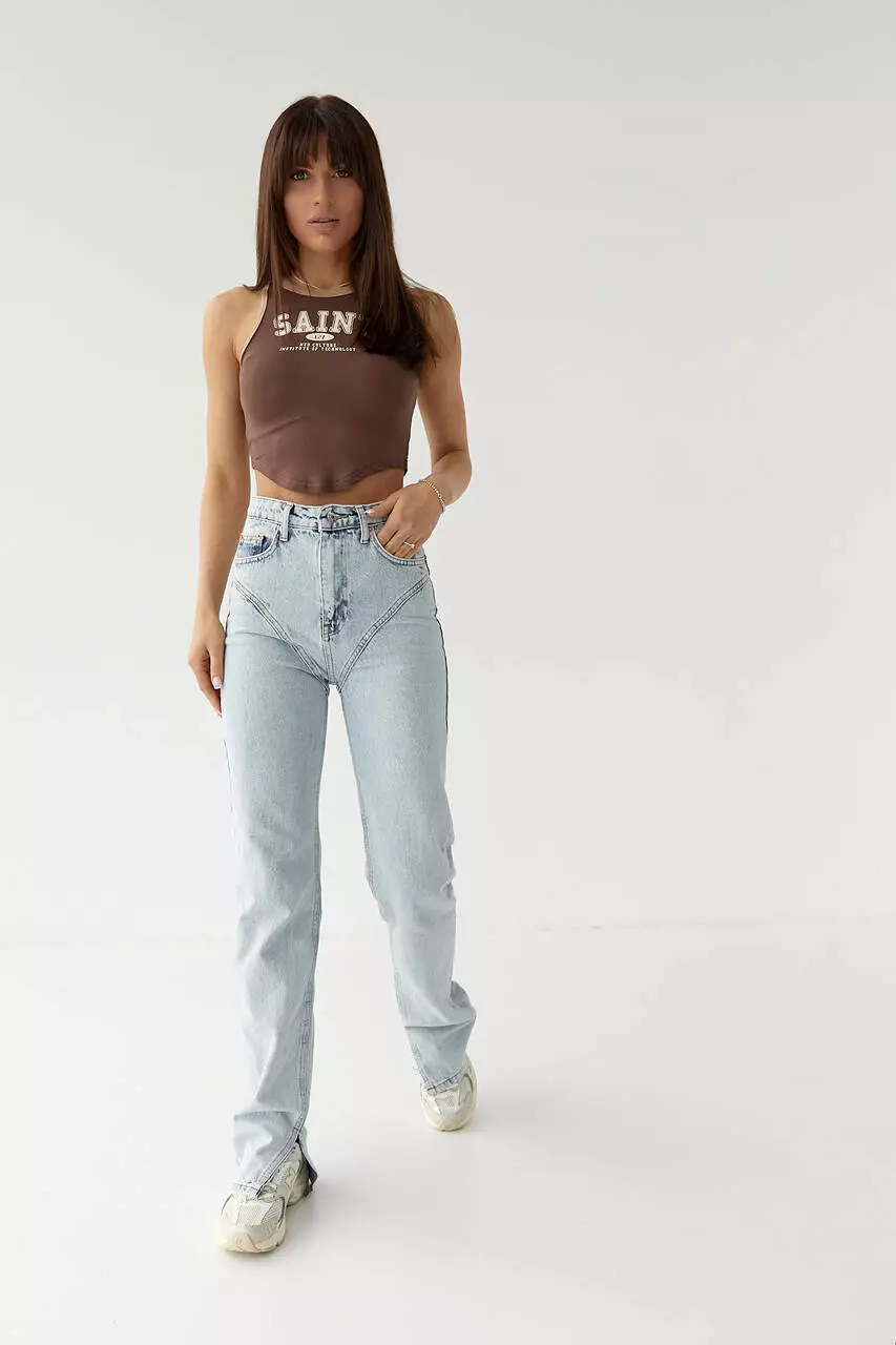 Если в твоем гардеробе уже есть базовые джинсы, тогда пора приобрести еще и модель с высокой талией и фигурной кокеткой. С такой обновкой ты получишь самые модные образы сезона.