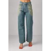 Женские джинсы прямого кроя с эффектом two-tone coloring - это стильный вариант одежды, который отличается особой двухцветной тканью. Этот эффект придает джинсам уникальный и современный вид.