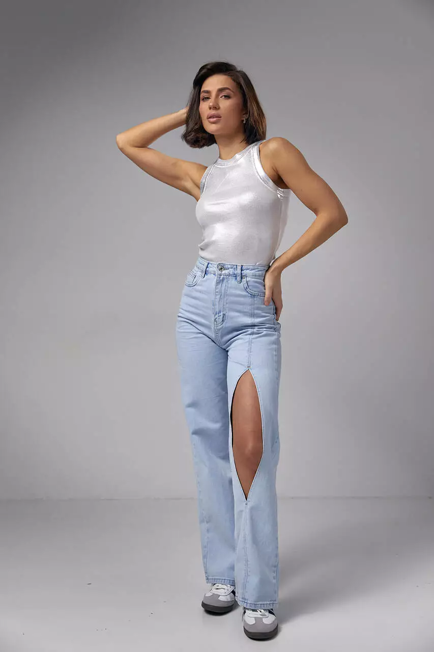 Пополни свою коллекцию модных джинсов новинкой от LUREX! Они идеально подойдут для весенне-летнего периода благодаря мягкой джинсовой ткани и модному каплевидному вырезу на колене.