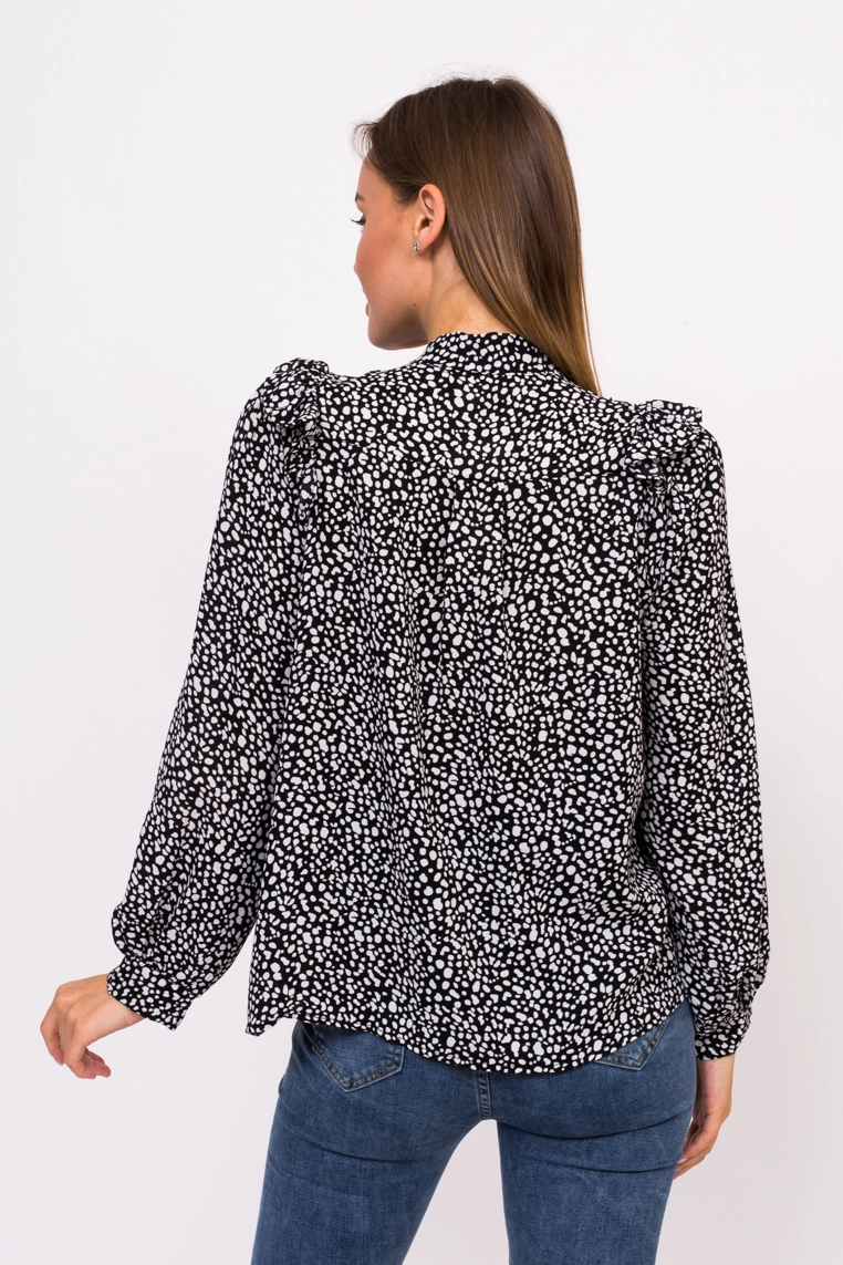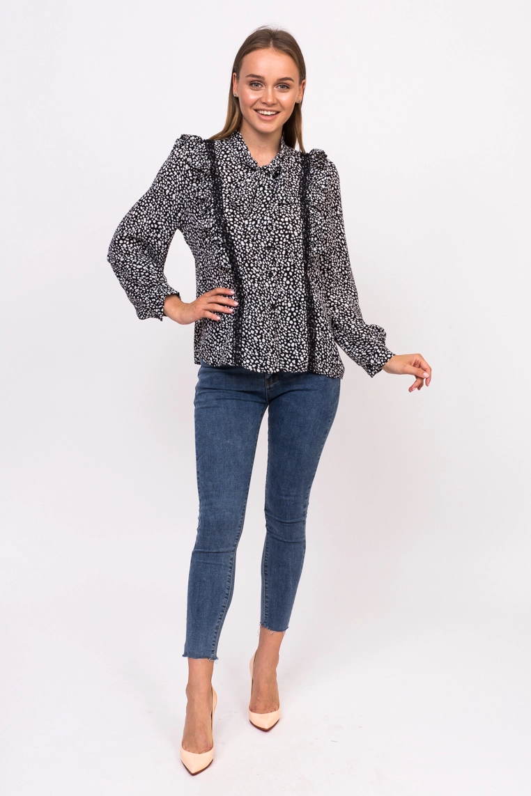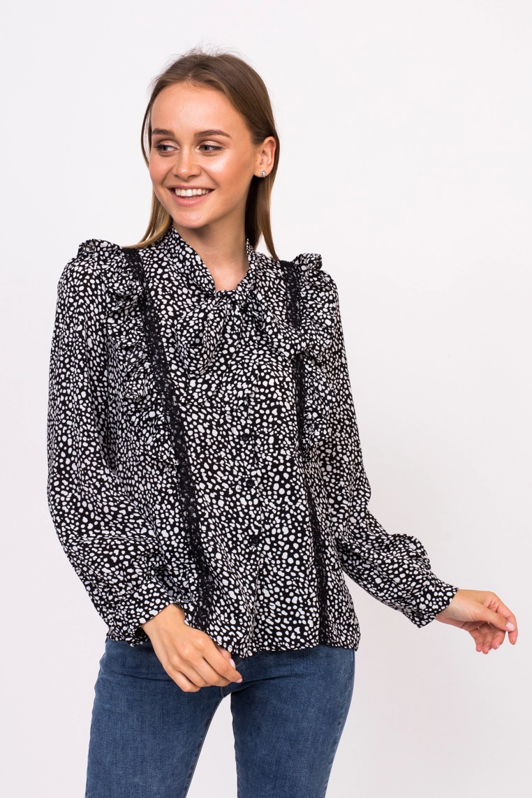 Классическая женская блузка с леопардовым принтом незаменимая вещь в гардеробе женщины. Блузка с длинным рукавом, внизу застегивается на пуговицу.