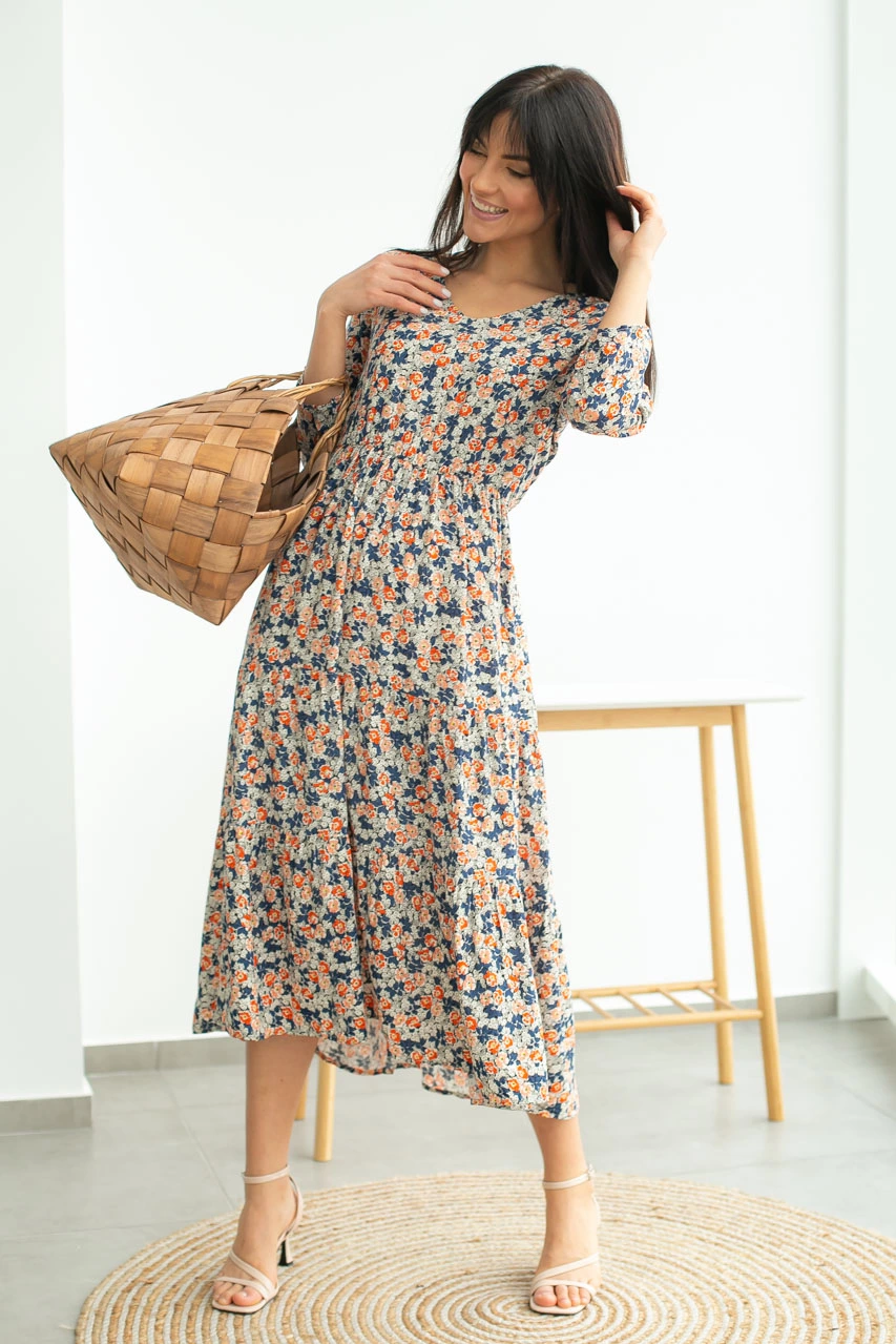 Воздушное платье-миди с рукавами средней длины займет почетное