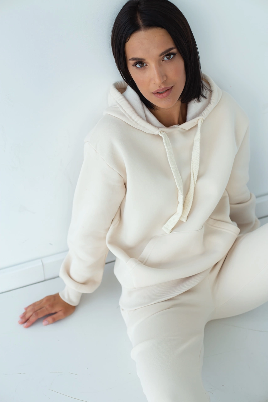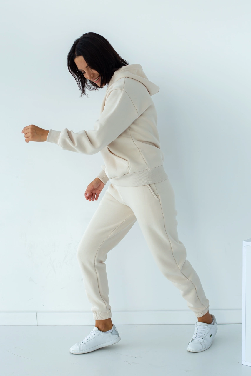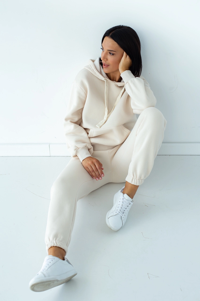 Спортивный комплект худи с джоггерами изготовлен из теплого и