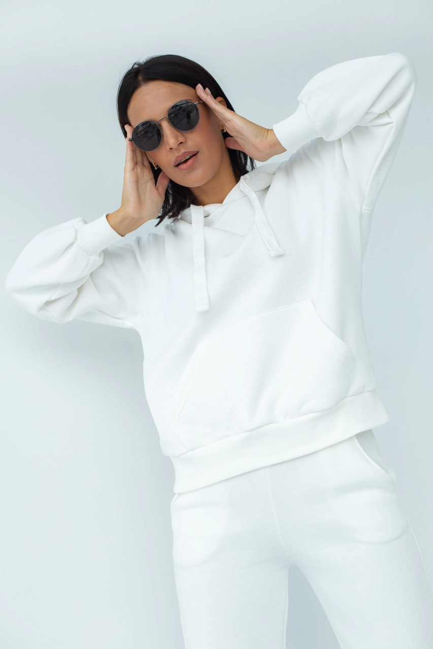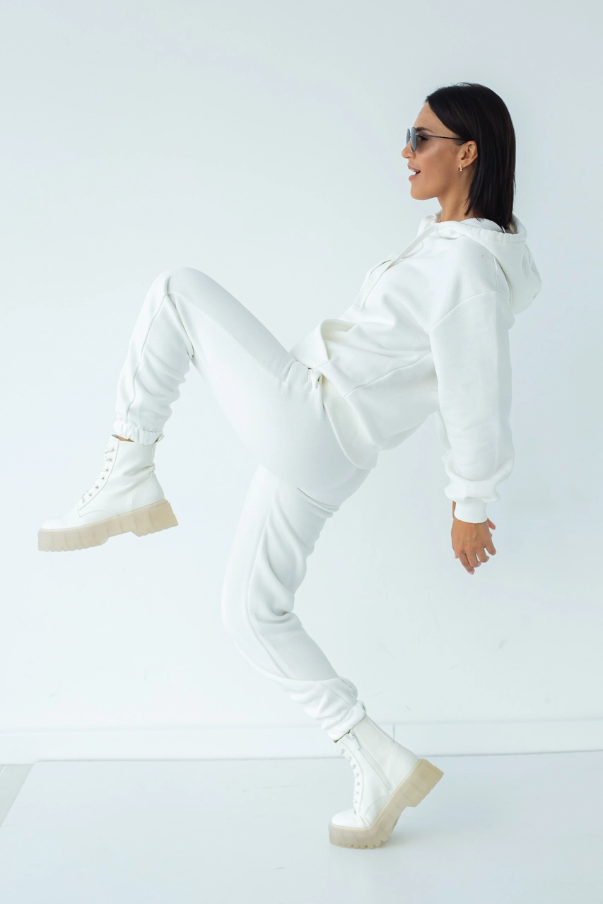 Спортивный комплект худи с джоггерами изготовлен из теплого и