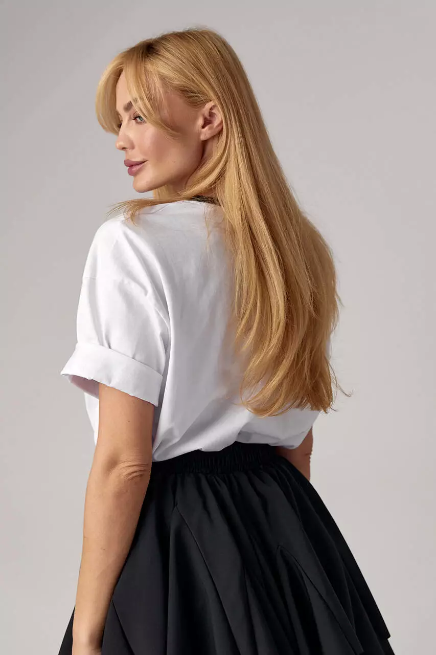 Базовая футболка женская с модными деталями поможет тебе по-новому обыграть привычные аутфиты.