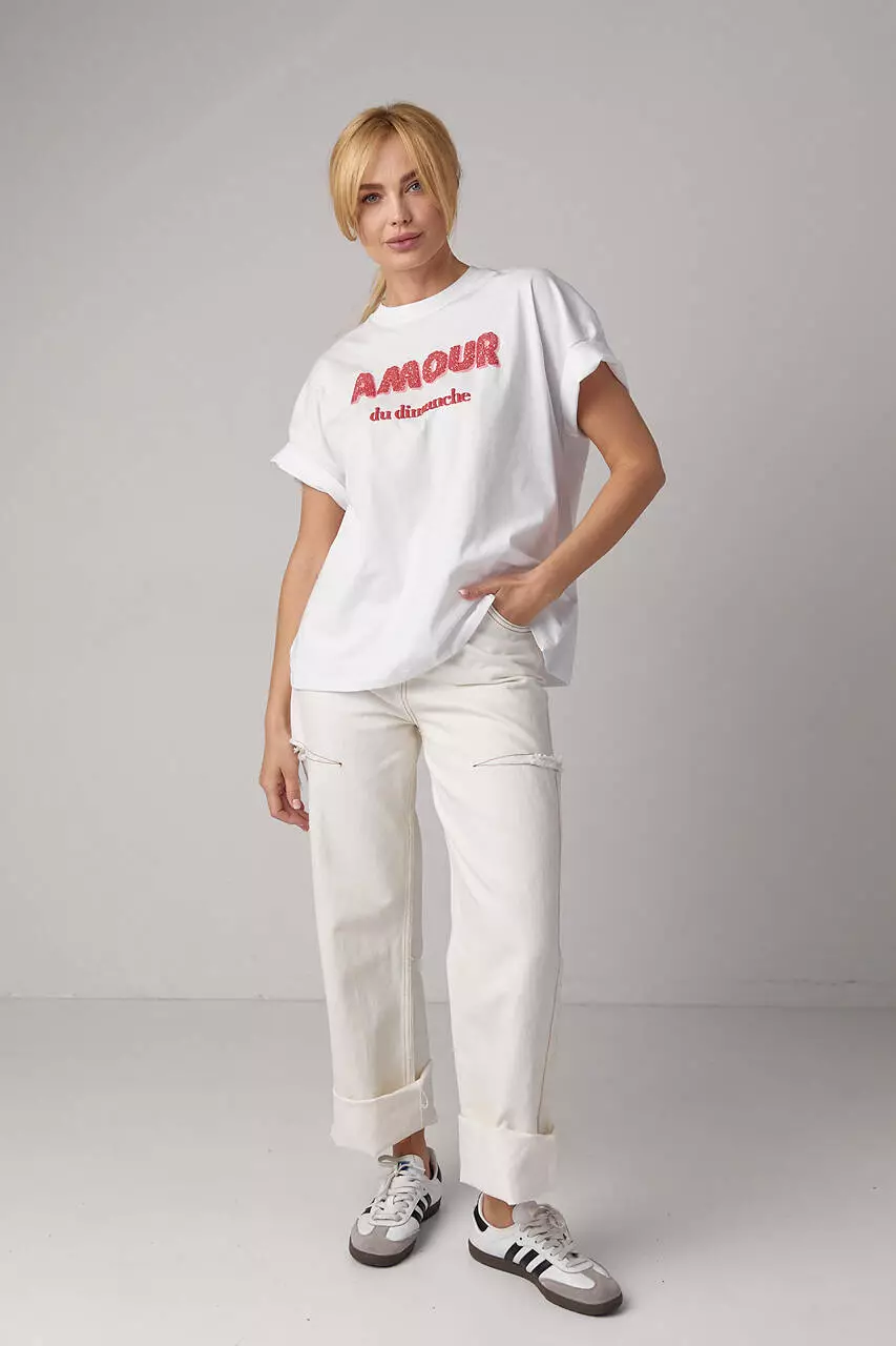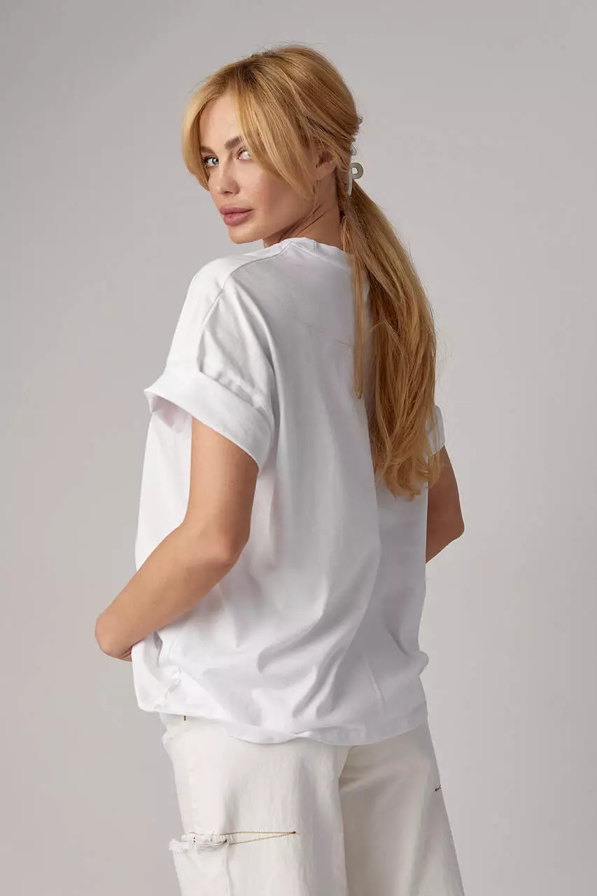 Эта модель идет с прямыми краями внизу, короткими рукавами и