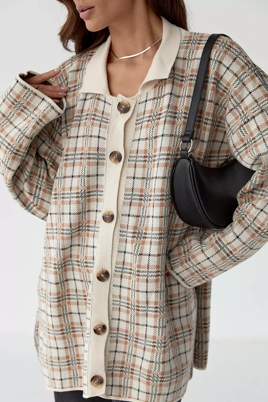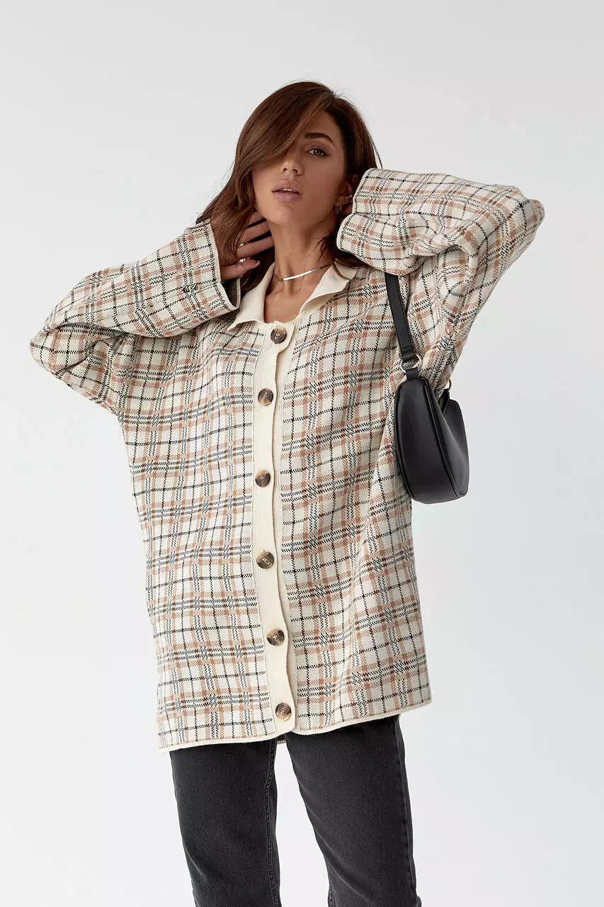 Красивый кардиган в классическом стиле не только согреет Вас в холодные дни, но и внесет нотки изысканность в Ваш образ. Изделие застегивается на шесть крупных пластиковых пуговиц. У модели длинные рукава и отложной воротник, который нежно открывает утонченную шею.