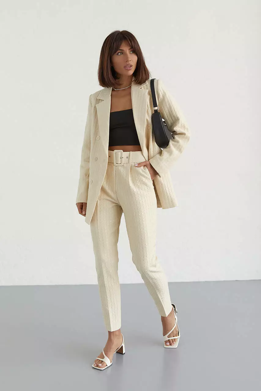 В этом модном брючном костюме для женщин сочетаются лучшие последние тренды, качественная ткань и доступная цена. Просто находка!