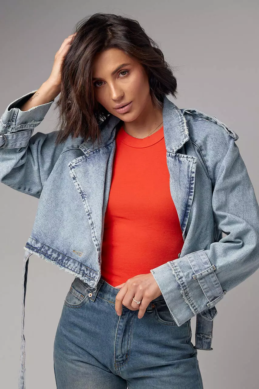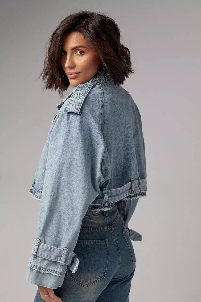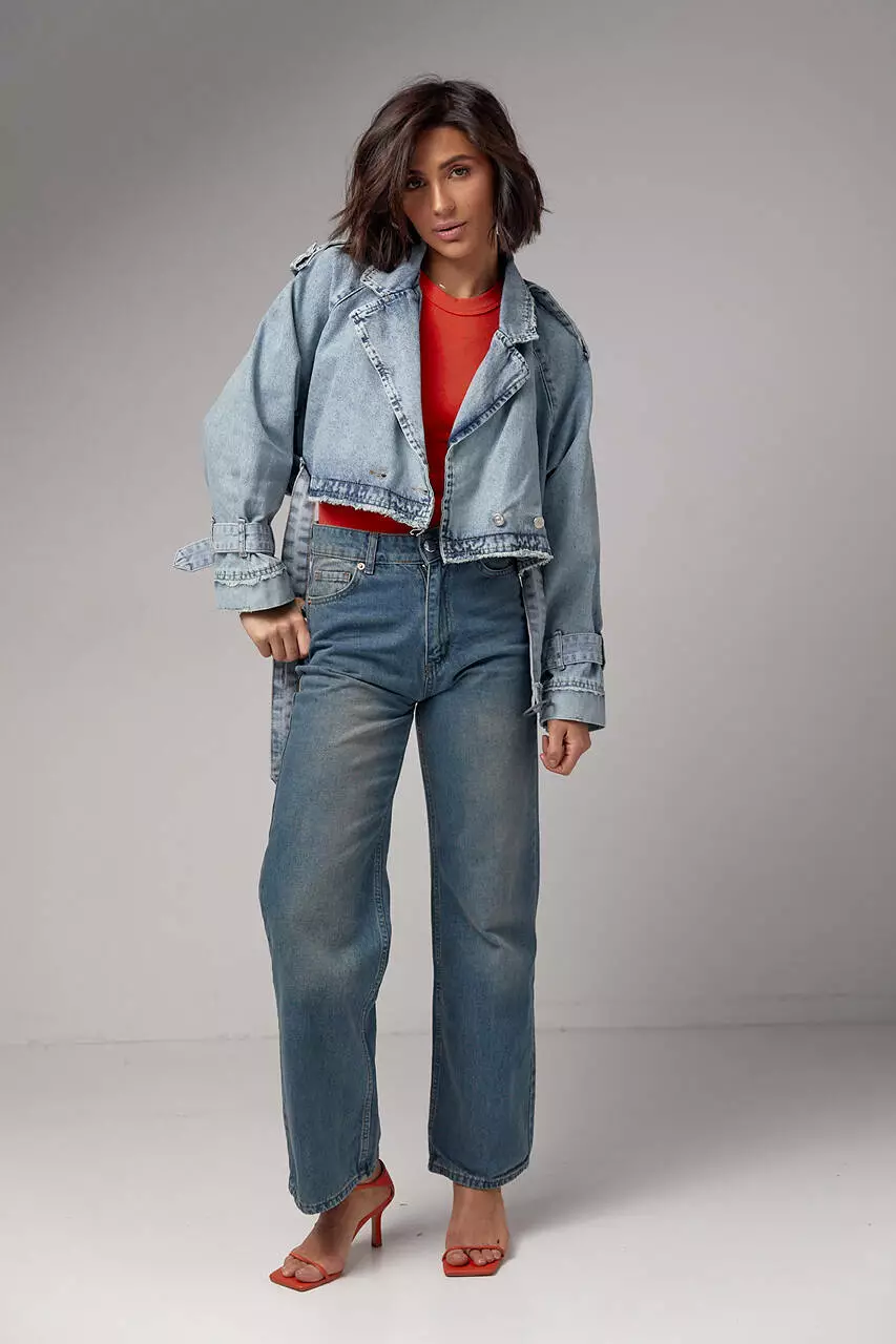 Короткая женская джинсовка в стиле Grunge - джинс цвет, L (есть размеры)