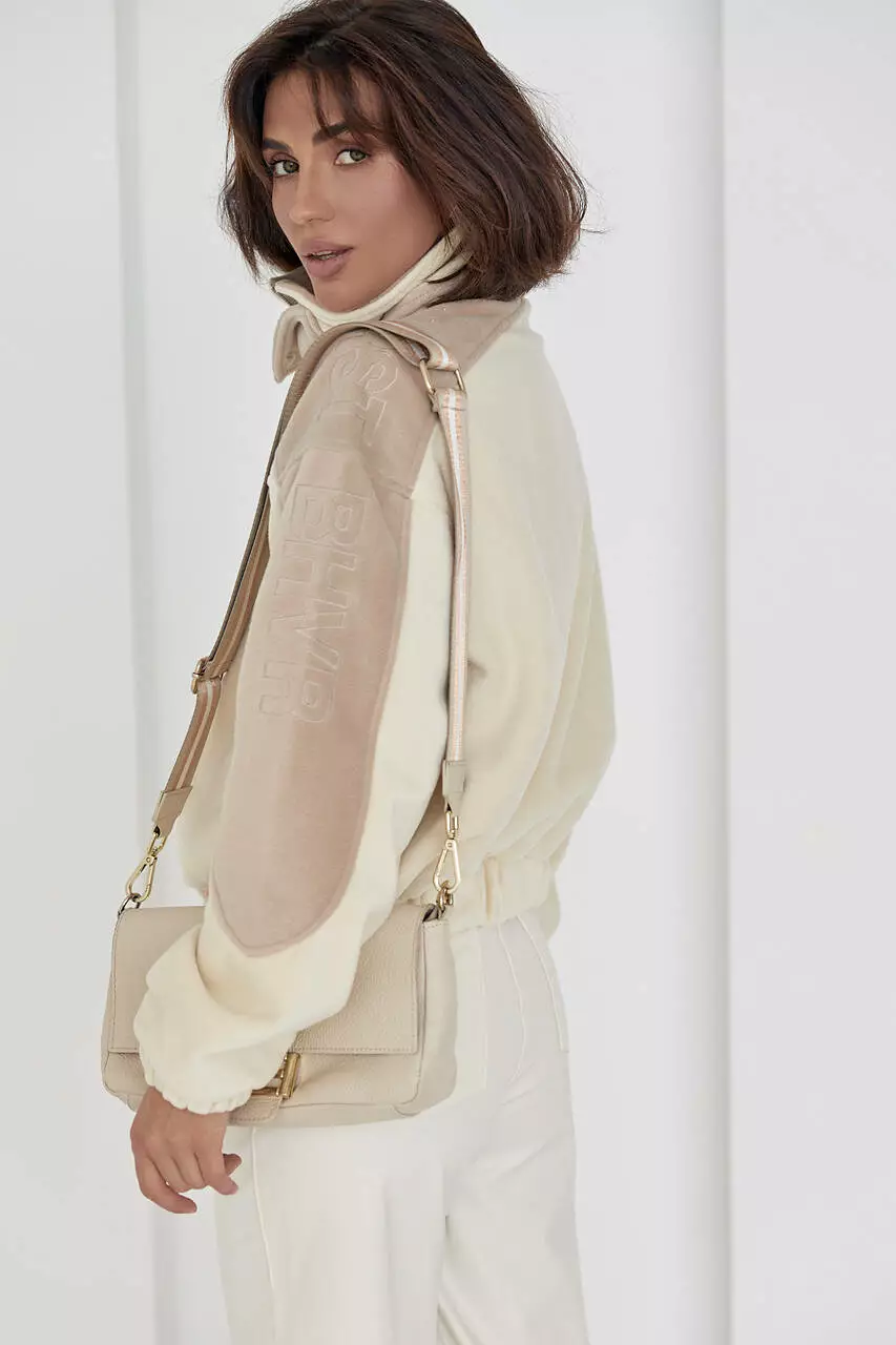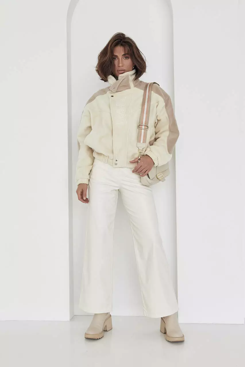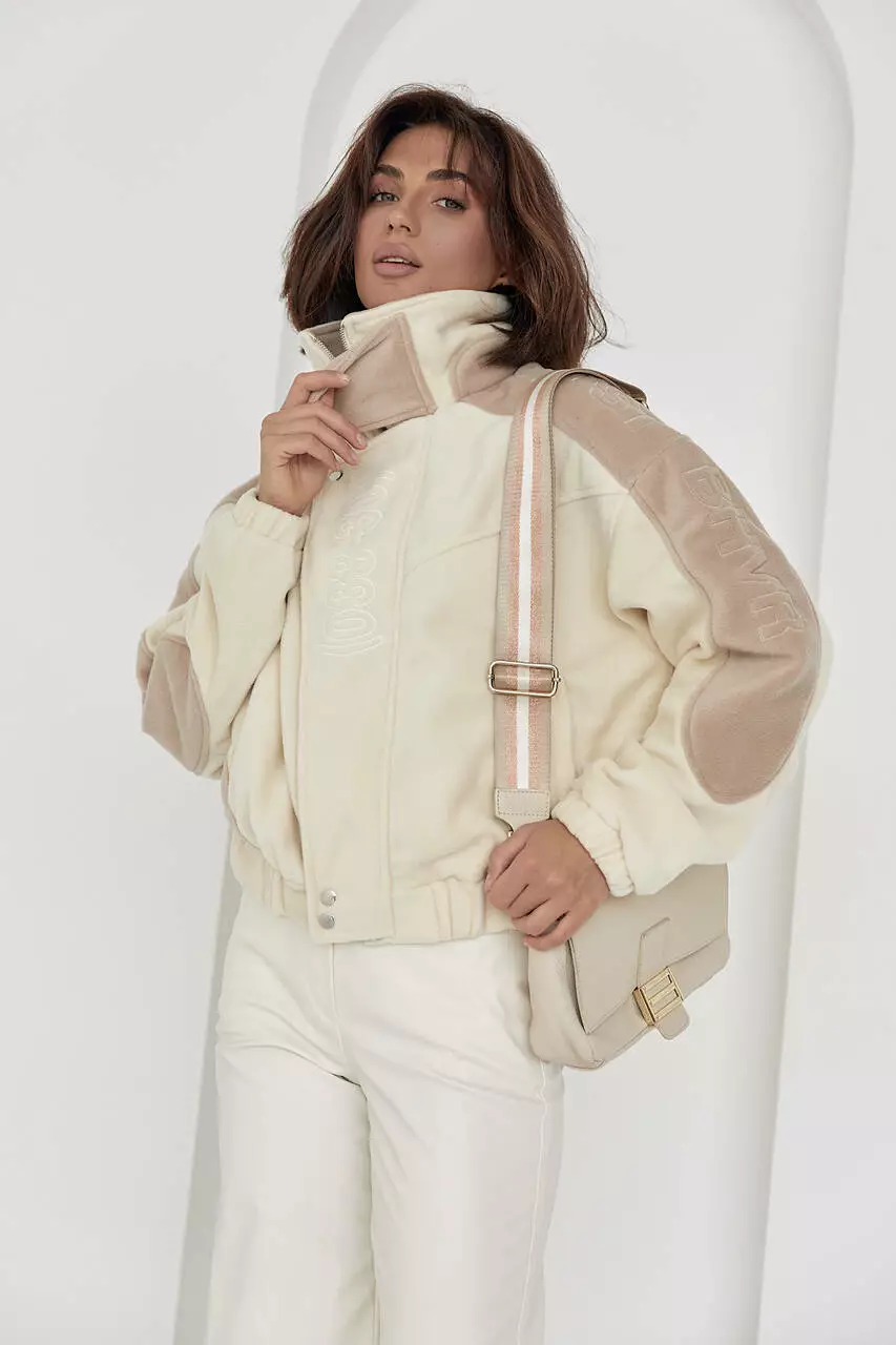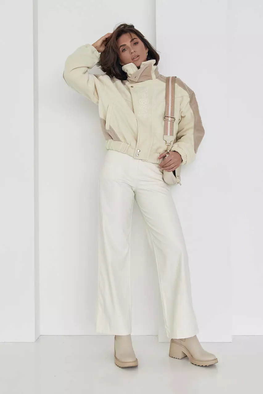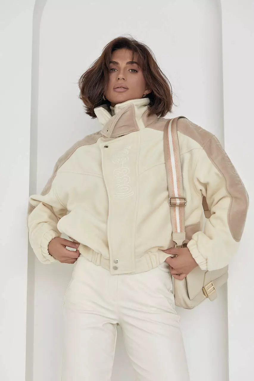Изделие имеет высокую горловину, которая защитит от ветра и вместительные боковые карманы. Длинные рукава заканчиваются манжетами на резинке.
