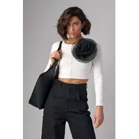 Дополнить образ с юбкой или джинсами с высокой посадкой тебе поможет этот базовый трикотажный джемпер в рубчик с объемным цветком.