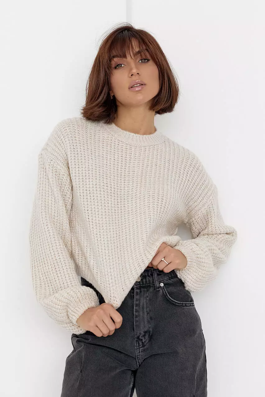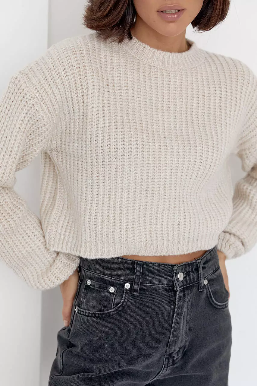 Этот укороченный стильный джемпер oversize станет главной изюминкой твоих модных образов в осенне-зимний период.