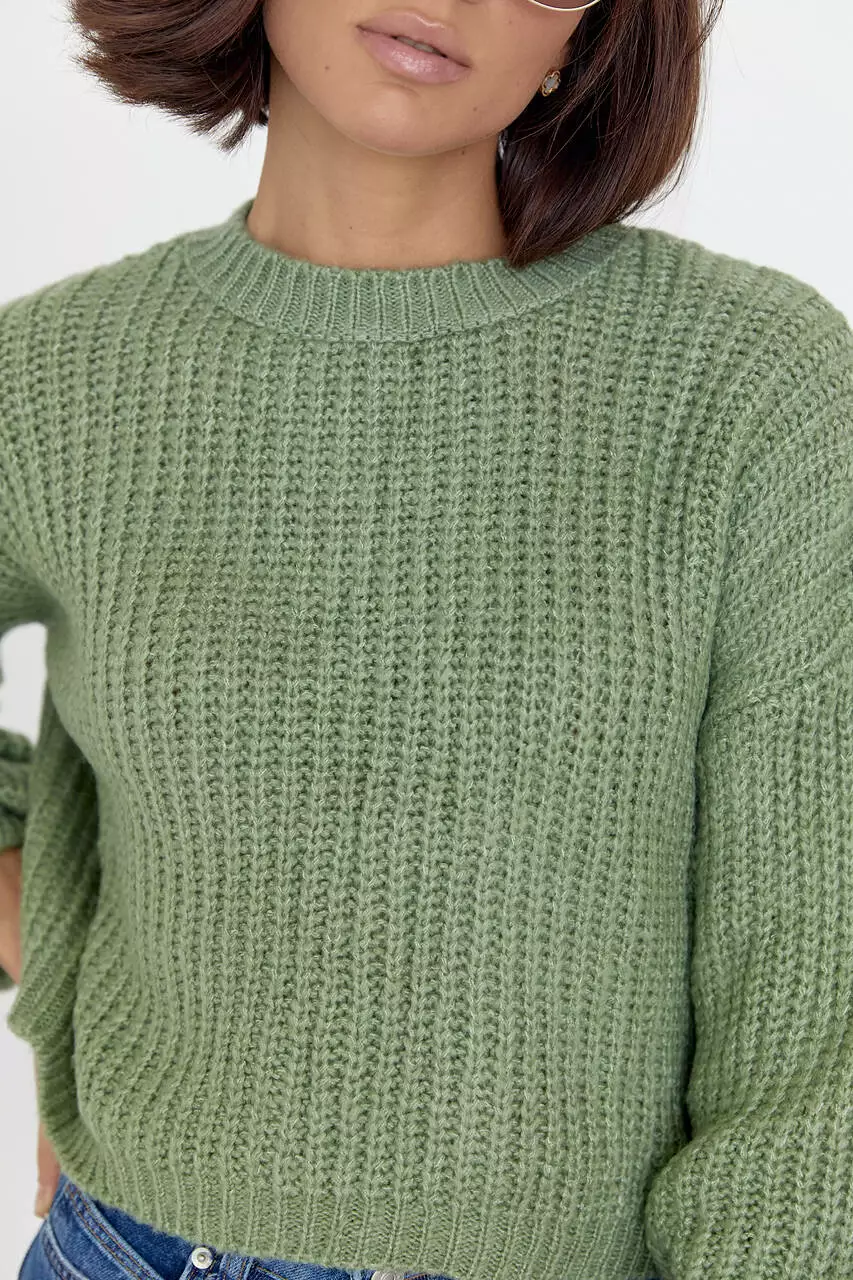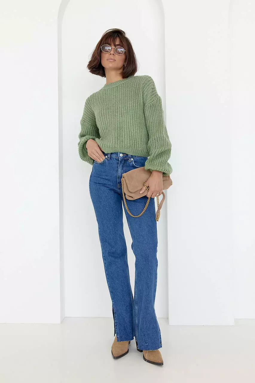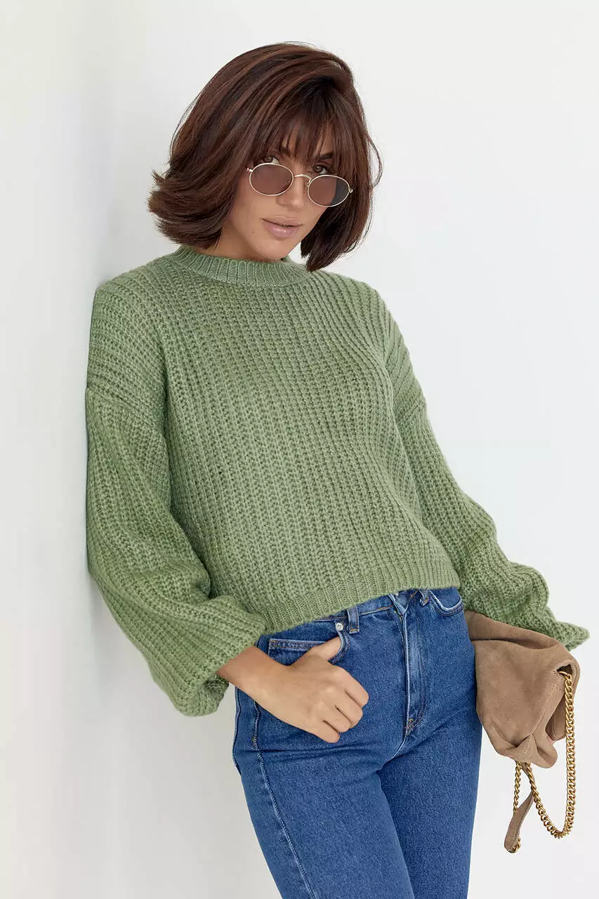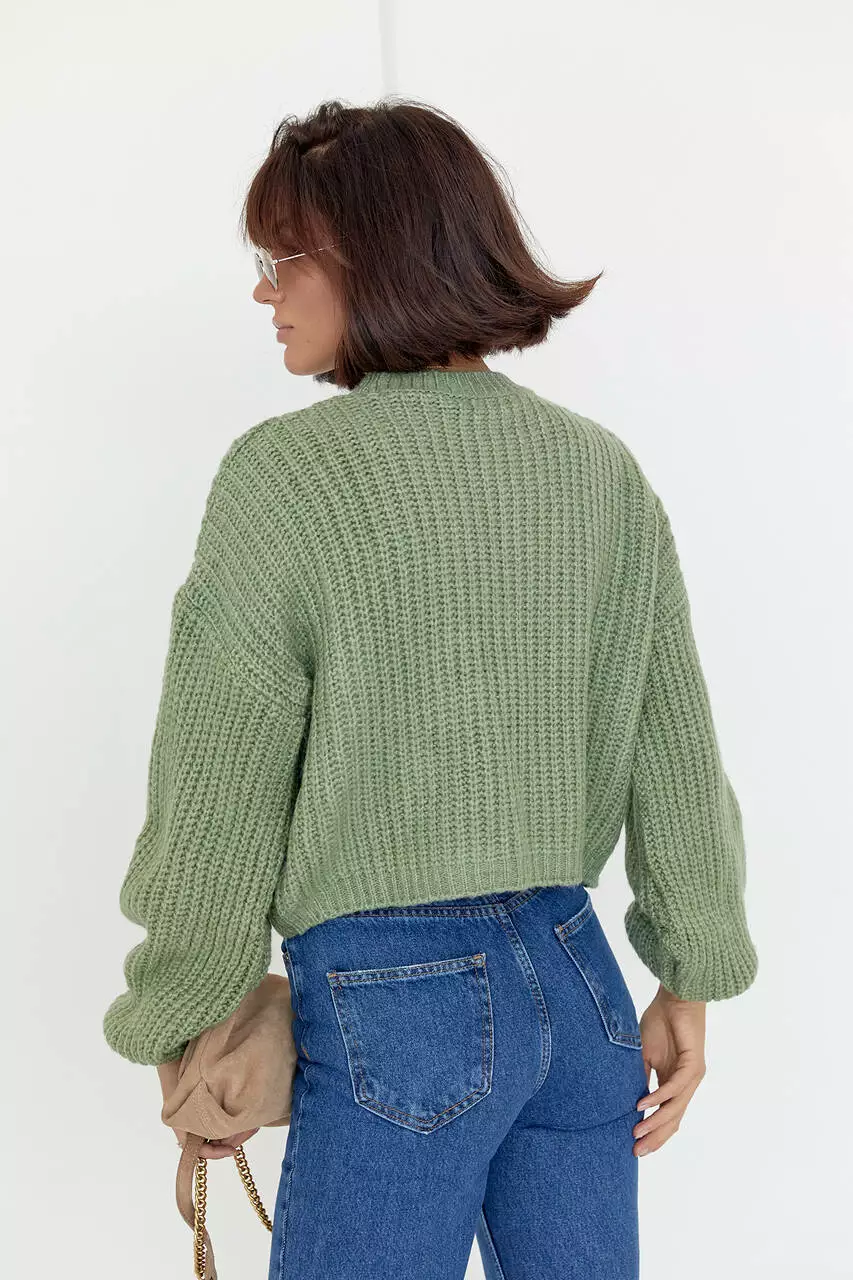Короткий вязаный джемпер oversize - мятный цвет, S (есть размеры)