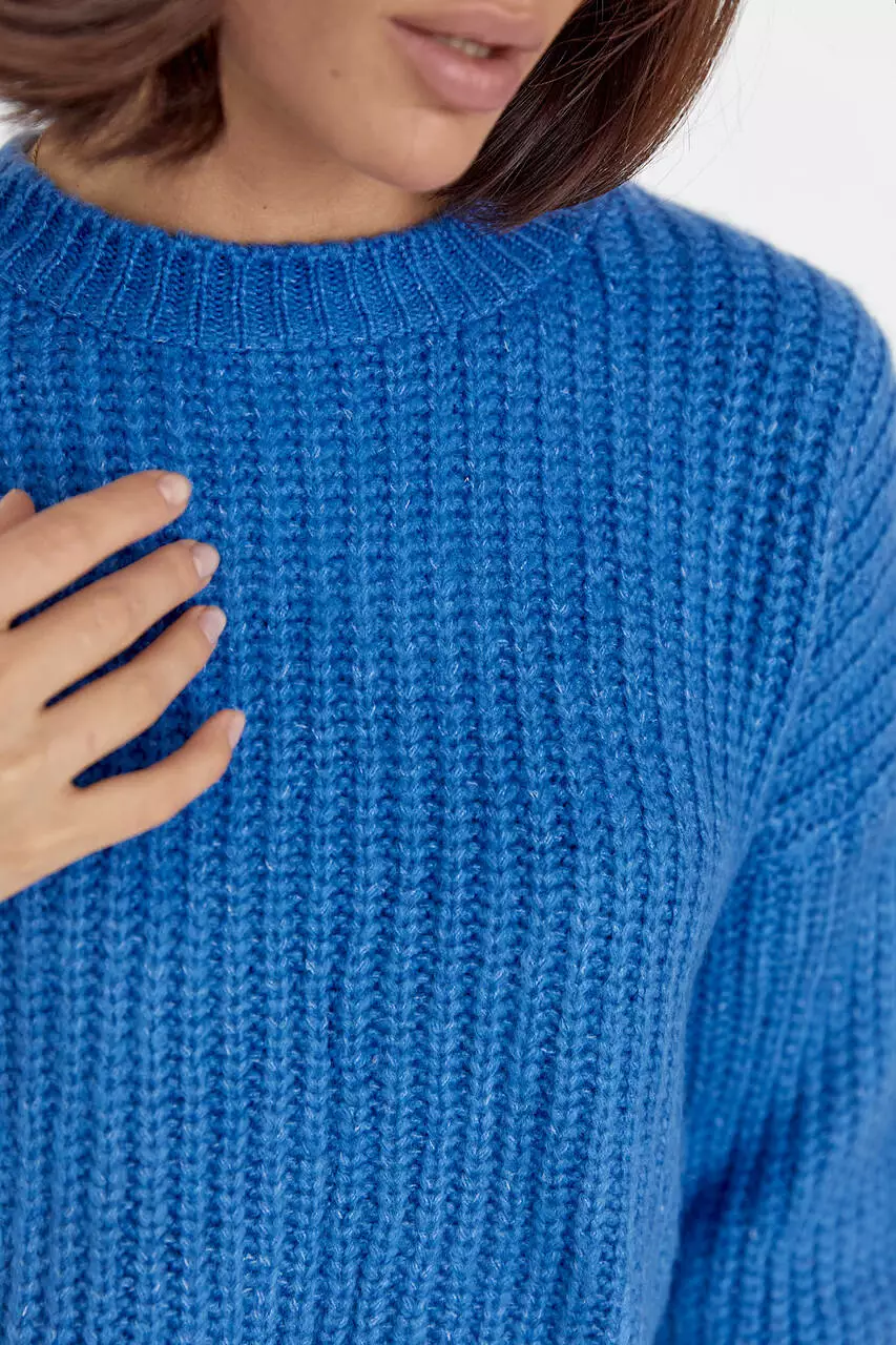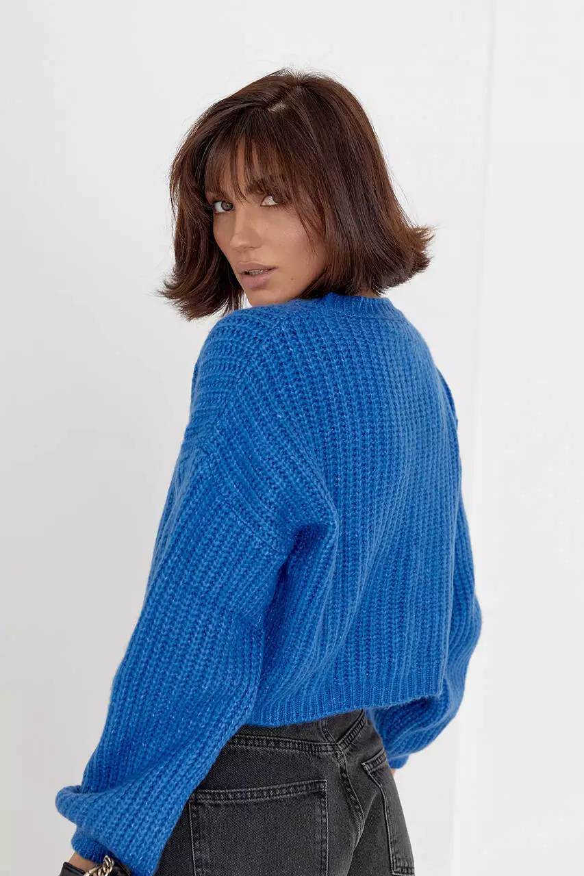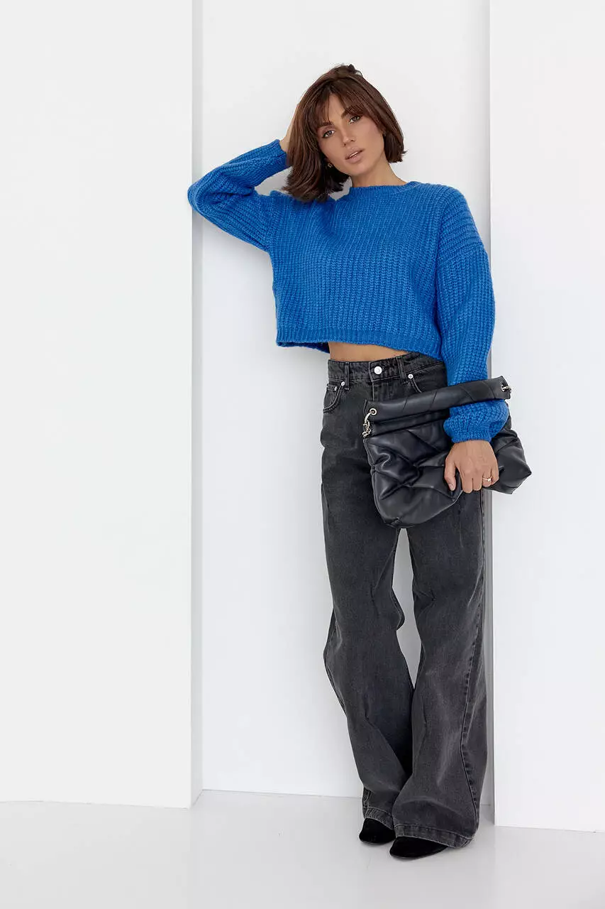 Короткий вязаный джемпер oversize - синий цвет, L (есть размеры)
