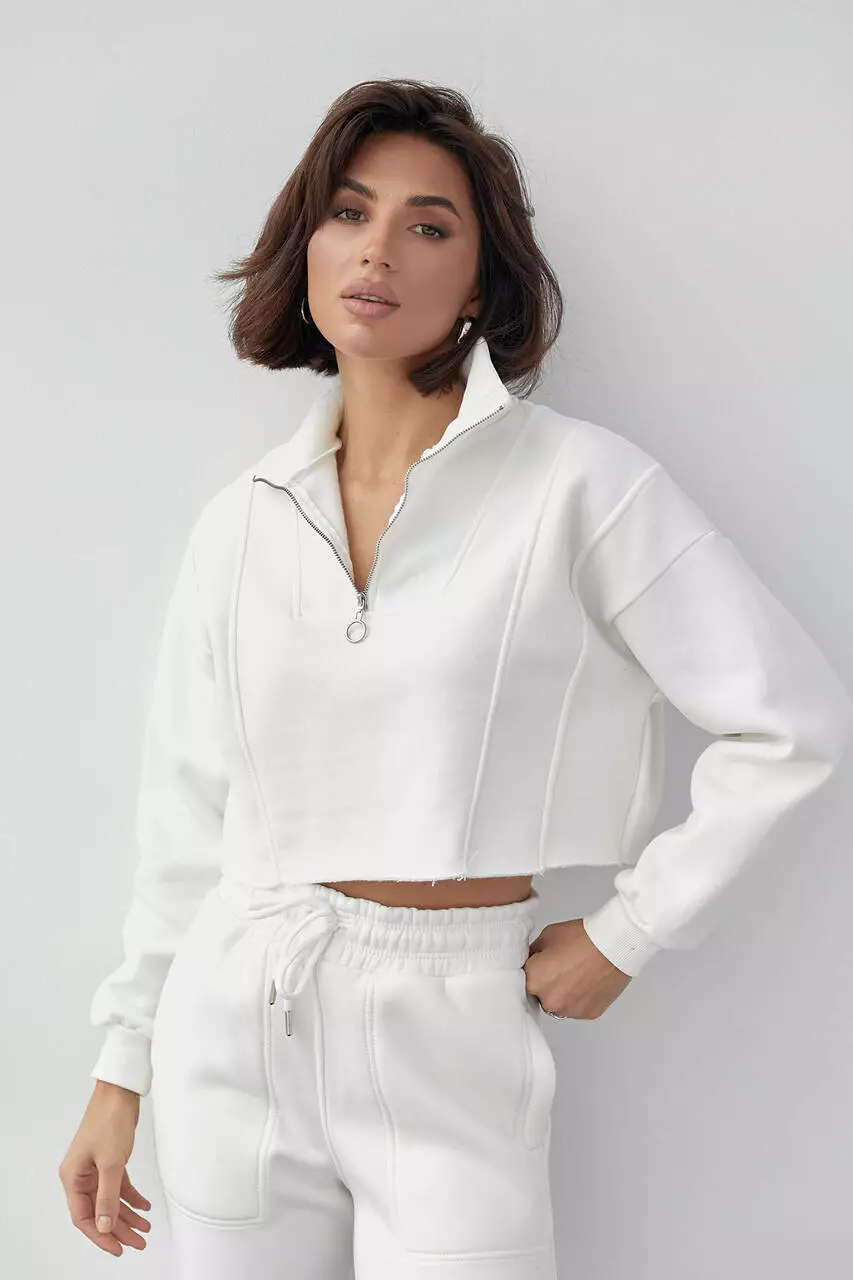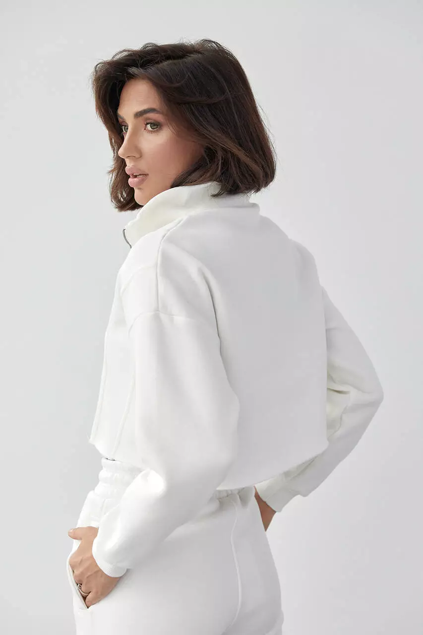 Этот теплый свитшот укороченной длинны станет прекрасным дополнением не только к спортивным штанам, но и к различным джинсам и другой одежде.