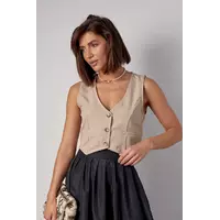 Короткий женский жилет в полоску на пуговицах - кофейный цвет, M (есть размеры)