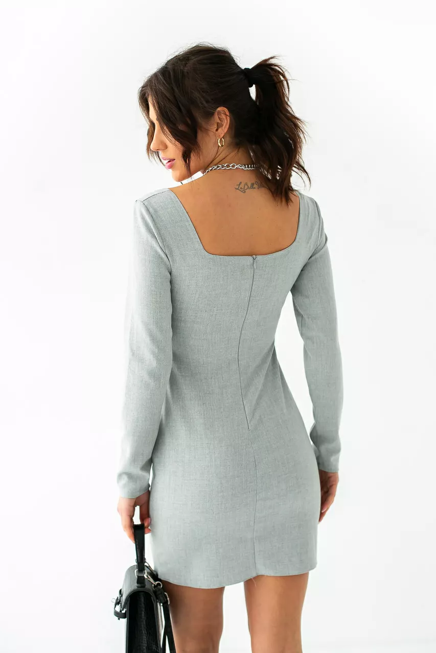 Элегантное платье приталенного фасона дополнено открытым
