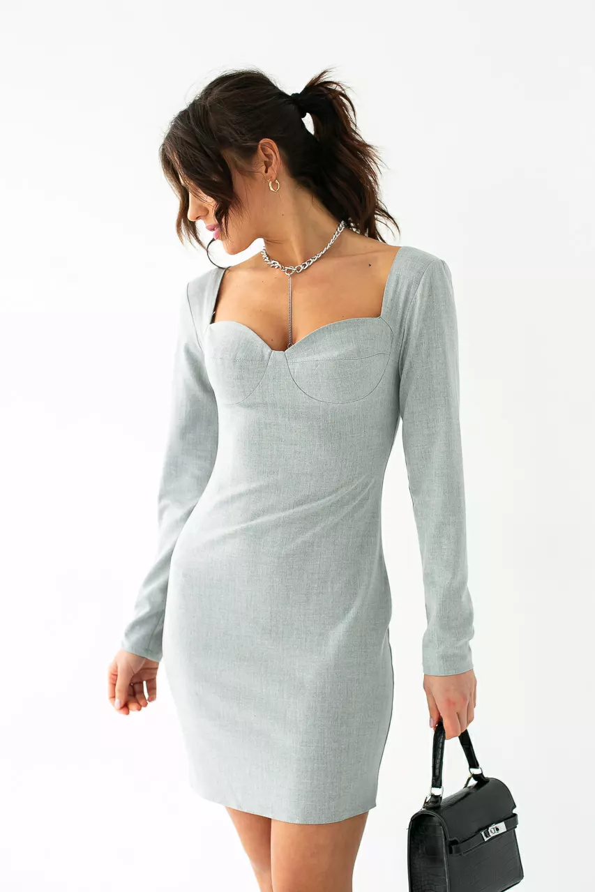 декольте с фигурным вырезом. Длинные рукава имеют зауженный крой.