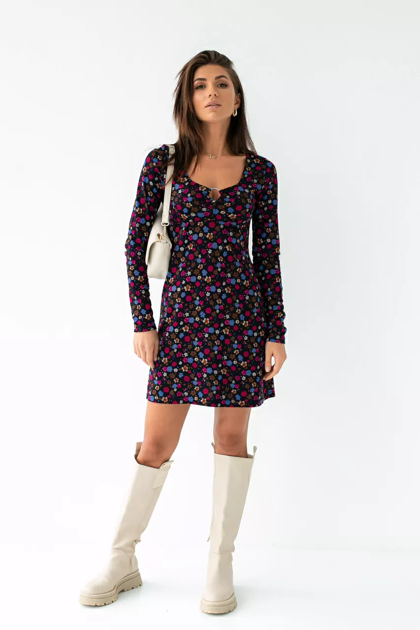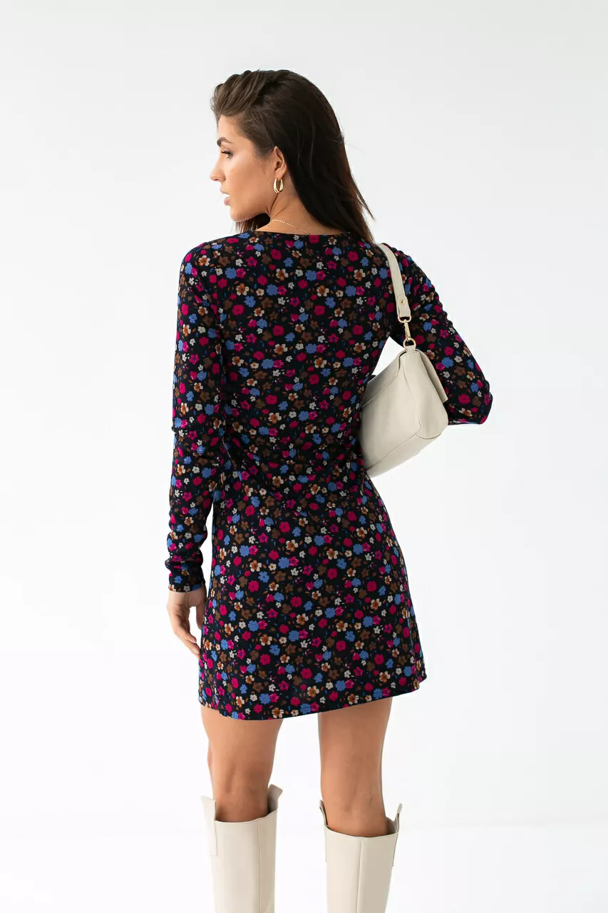 Короткое платье с цветочным принтом TOP20TY - фуксия цвет, S (есть размеры)