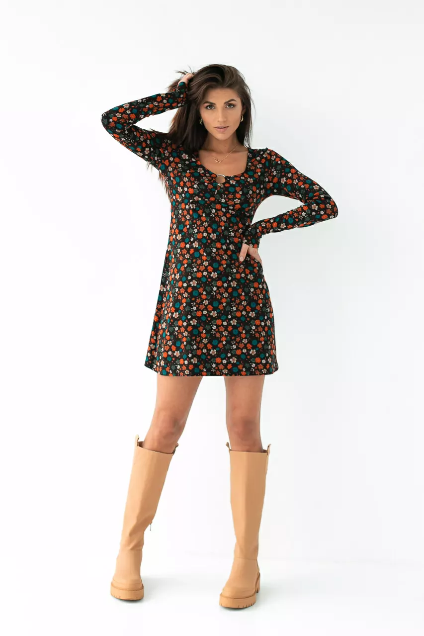 Короткое платье с цветочным принтом TOP20TY - зеленый цвет, S (есть размеры)