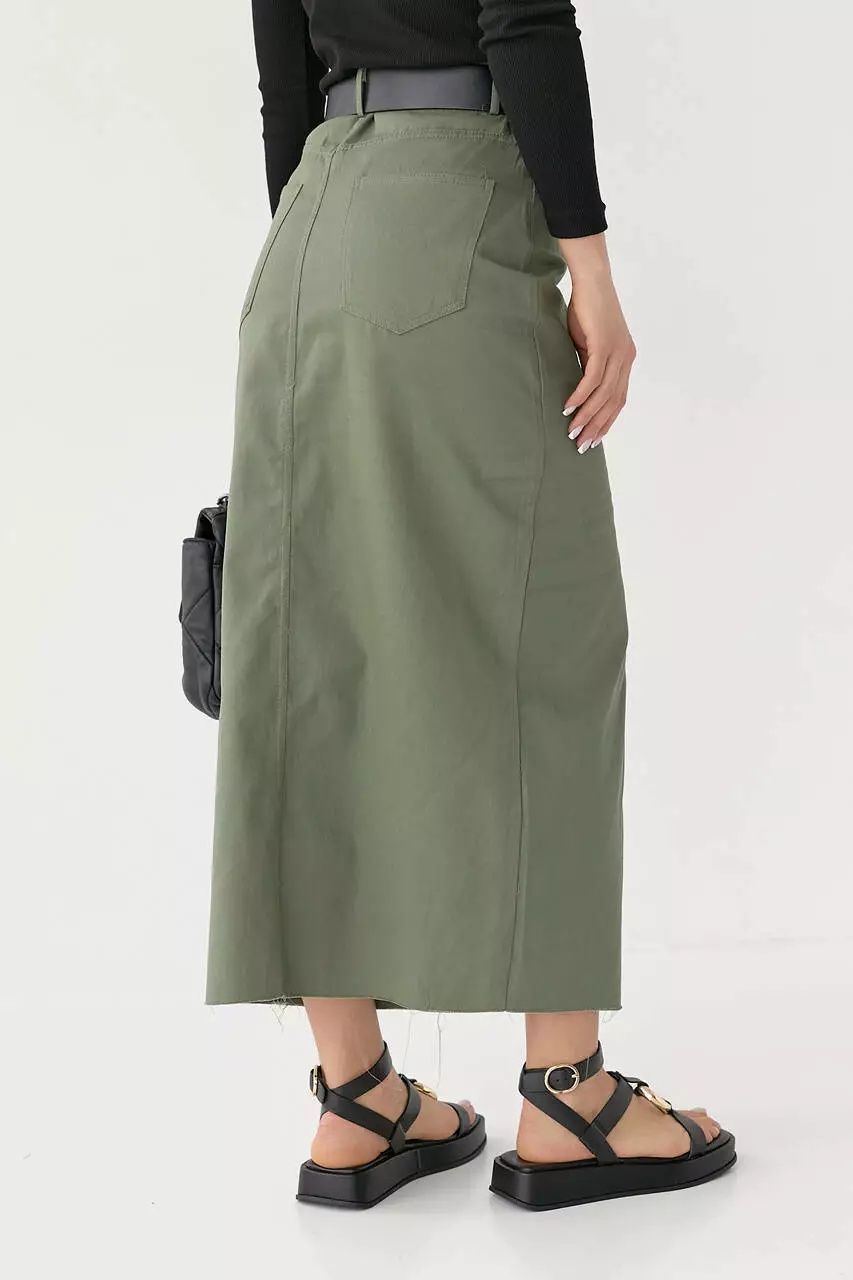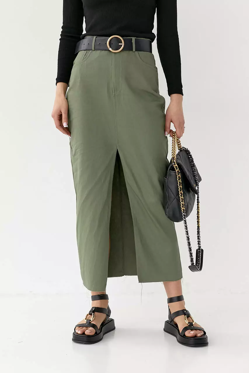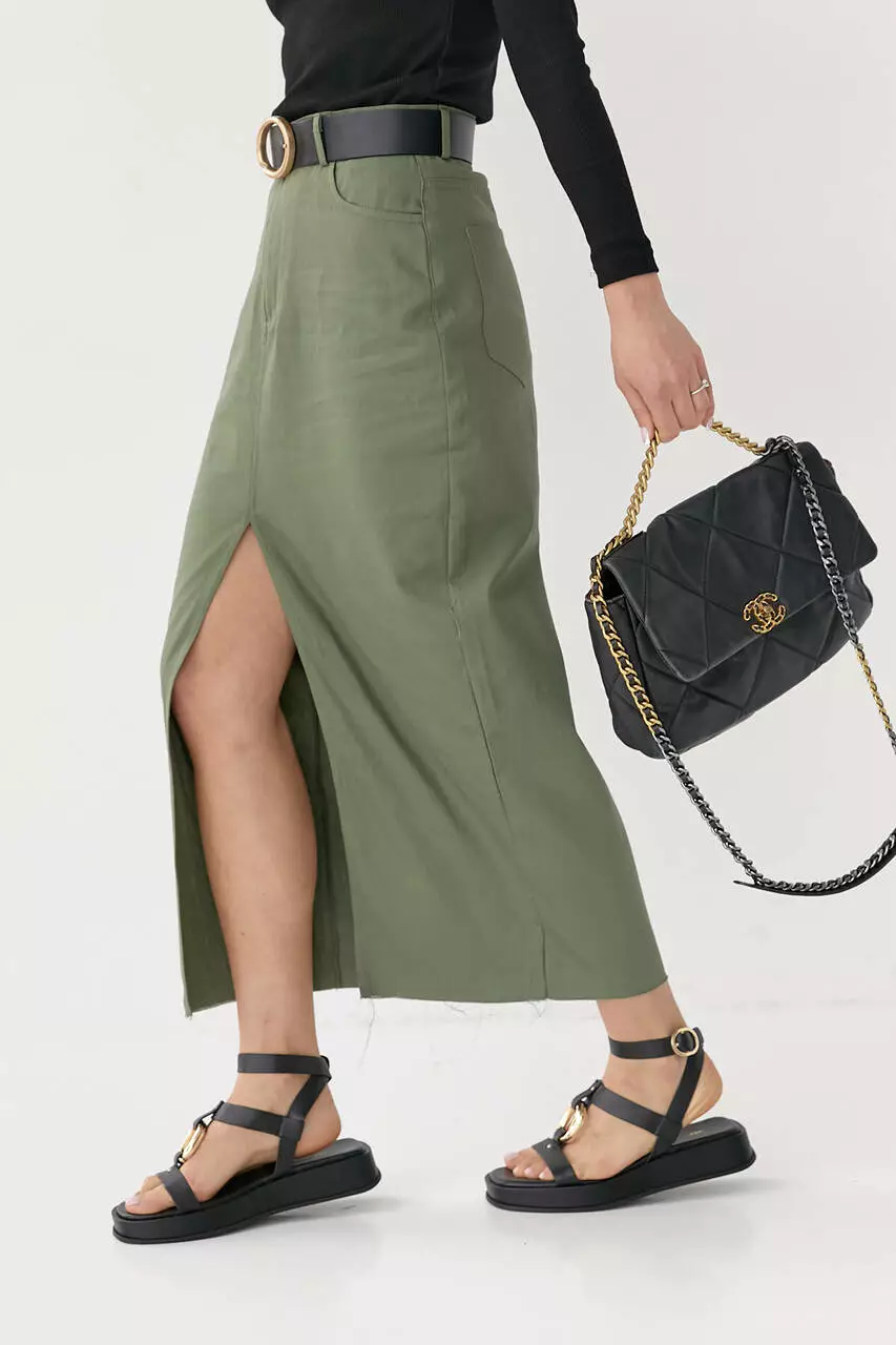 Втачной пояс идет без резинки внутри, с петлями для ремня.
