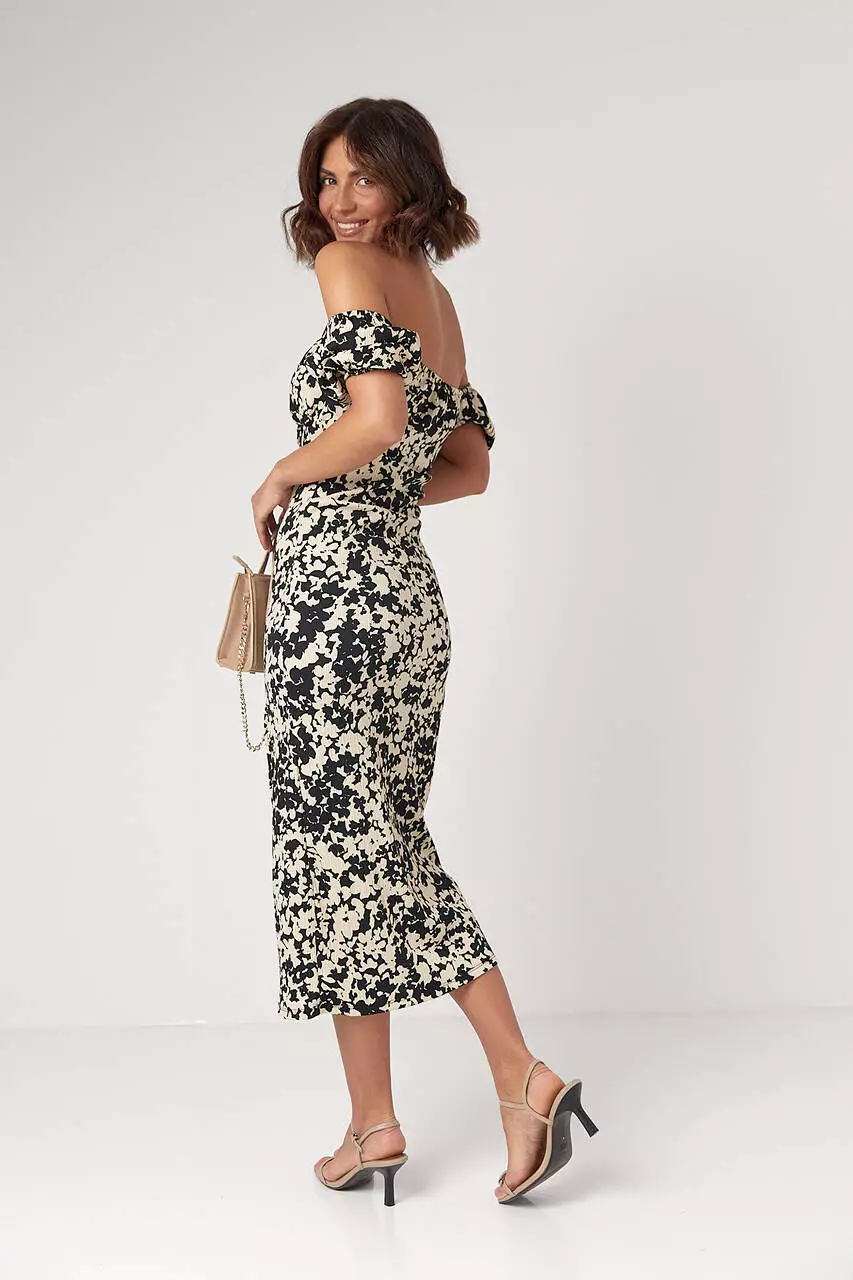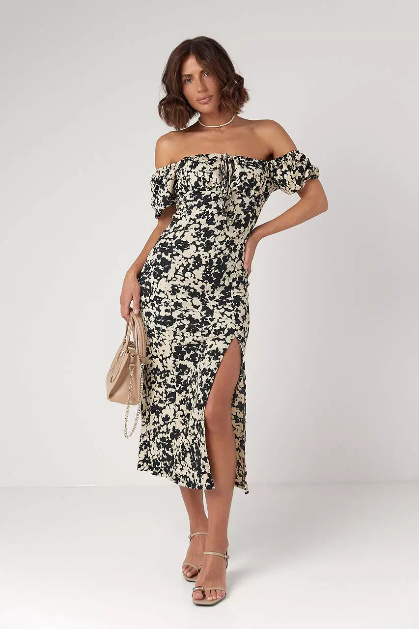 Для создания элегантных аутфитов жара – не помеха! С силуэтным платьем миди с открытыми плечами ты вмиг получишь желаемый результат.