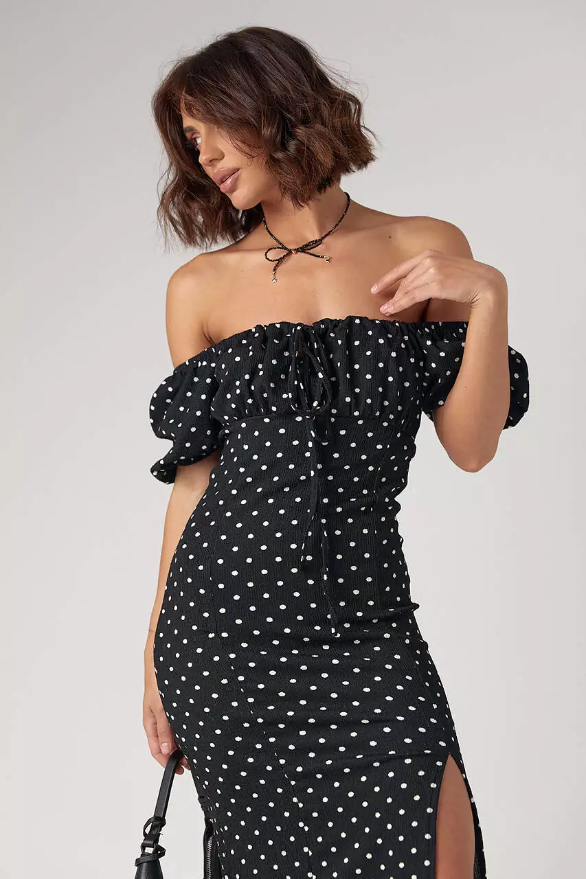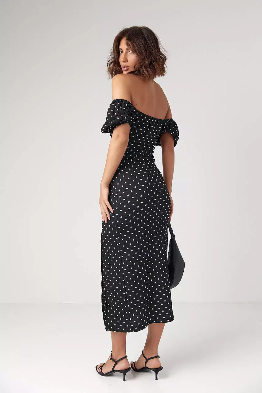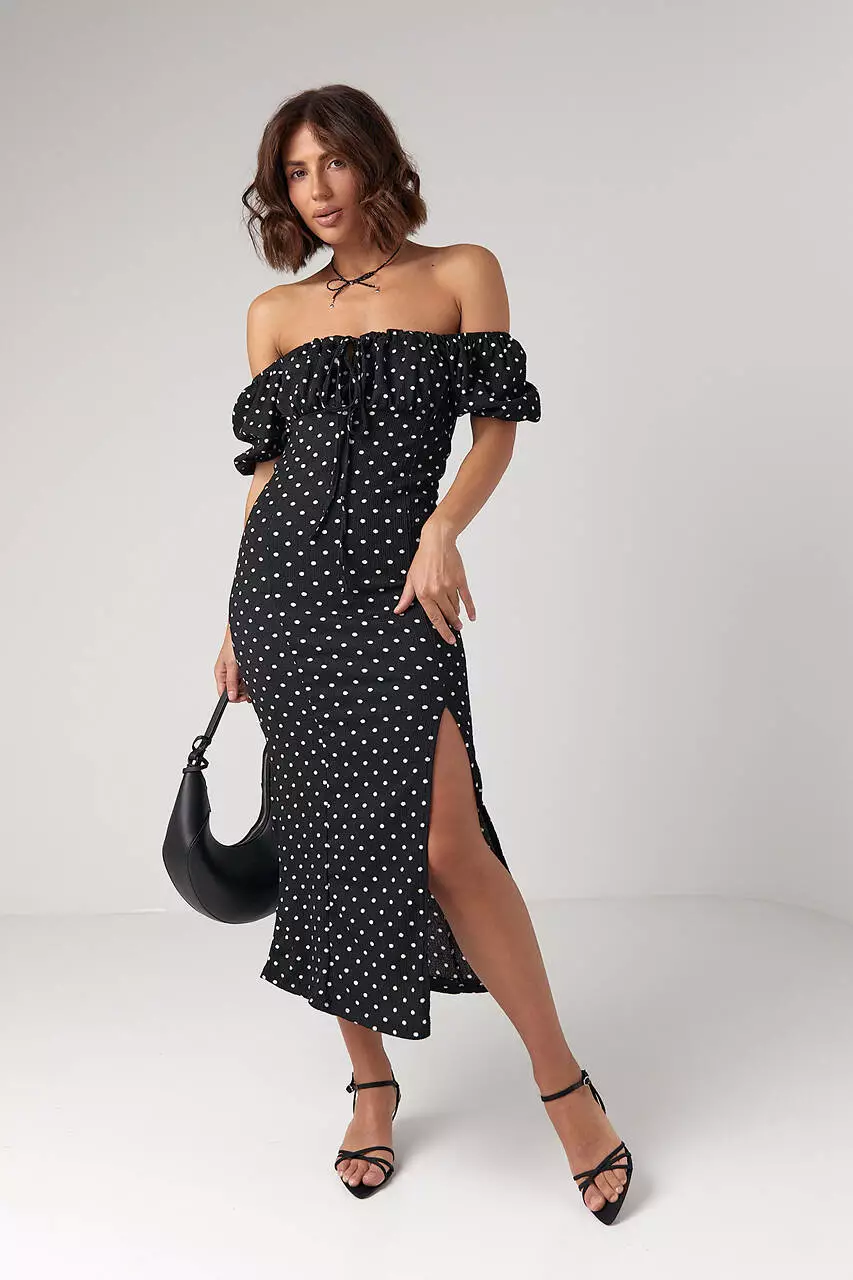 Эта модель в горошек красиво подчеркивает женскую фигуру