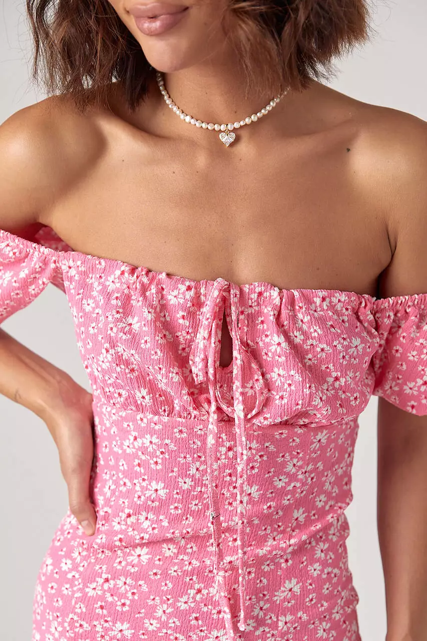 Короткие рукава-фонарики вверху и внизу собраны на резинку, что