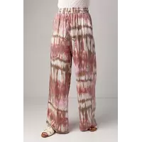 Чтобы летние монохромные образы не выглядели скучно, используй как основу прямые штаны с абстрактным узором. Он добавит динамичности привычным нарядам.