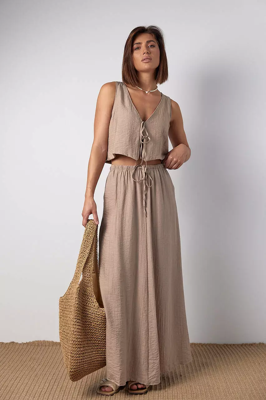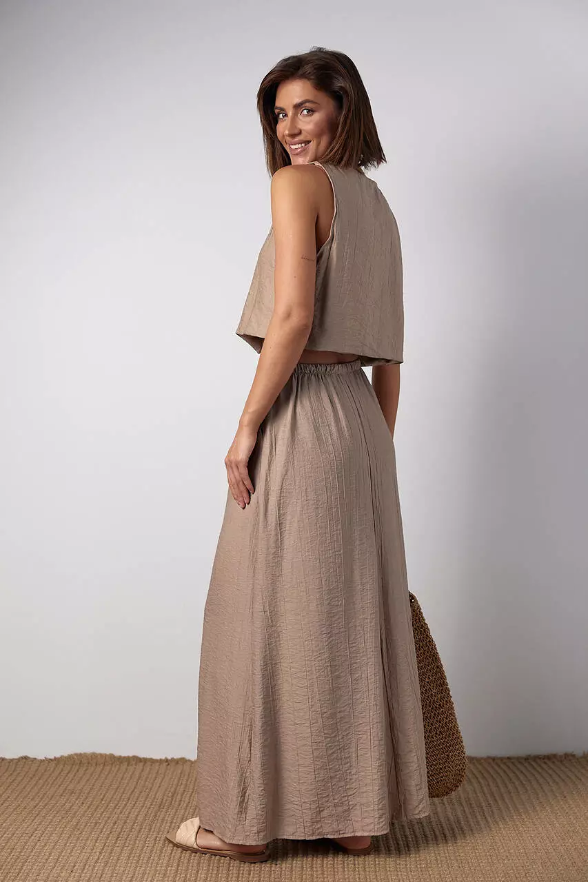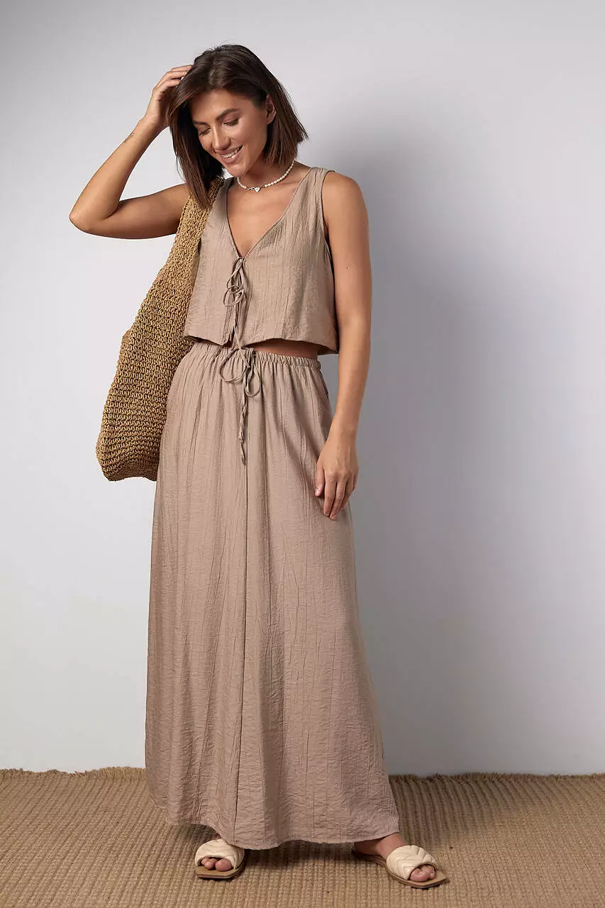Женский летний костюм, состоящий из длинной юбки и жилета,