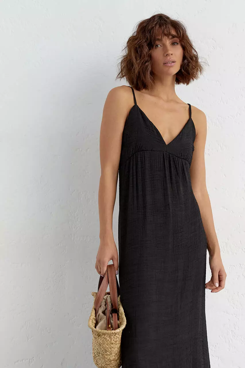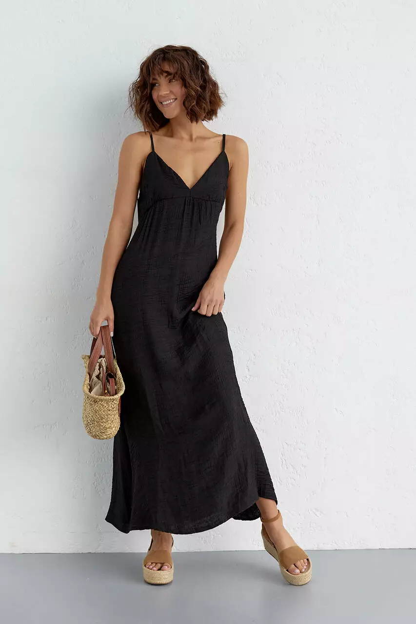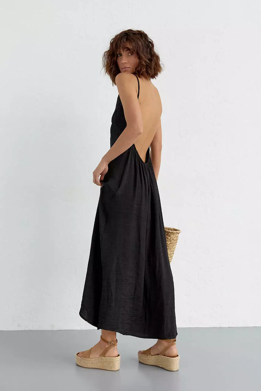 Летний сарафан с открытой спиной - черный цвет, L (есть размеры)