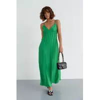 В модели с глубоким декольте тонкие бретели идут без регулировки длины. Линию груди подчеркивает фигурный шов. Низ изделия прямой, спинка открытая.
